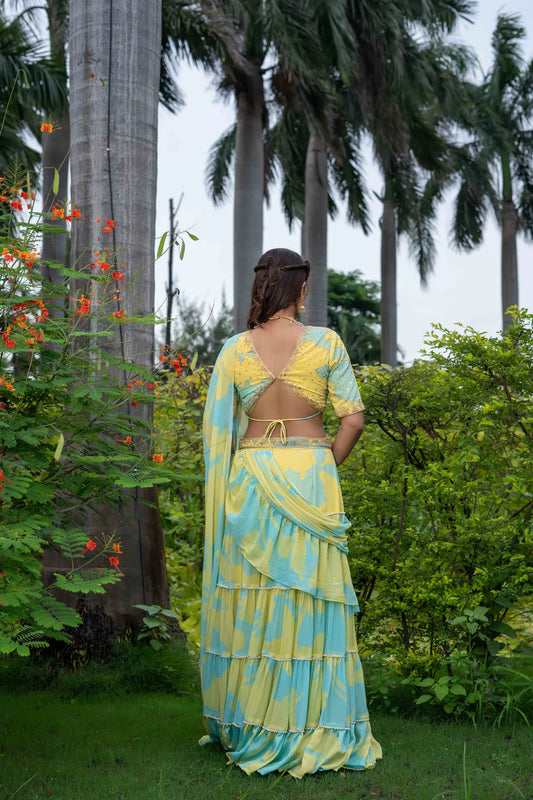 Floral ruffle saree set