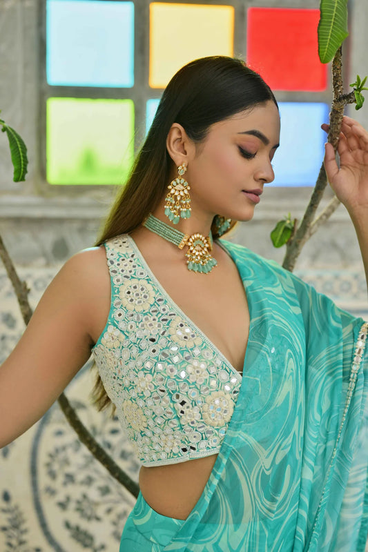 Marble ruffle saree