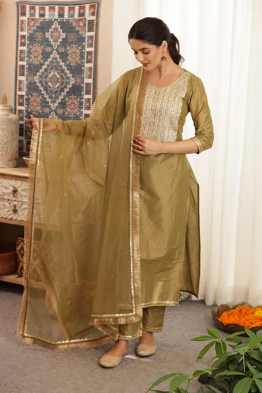 SITAARA CHANDERI ANGRAKHA SUIT SET