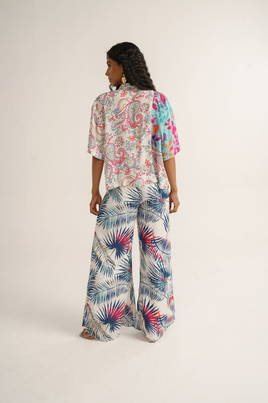 White Crepe Silk Print Floral Collared Neck Snowdrop Shirt With Pant