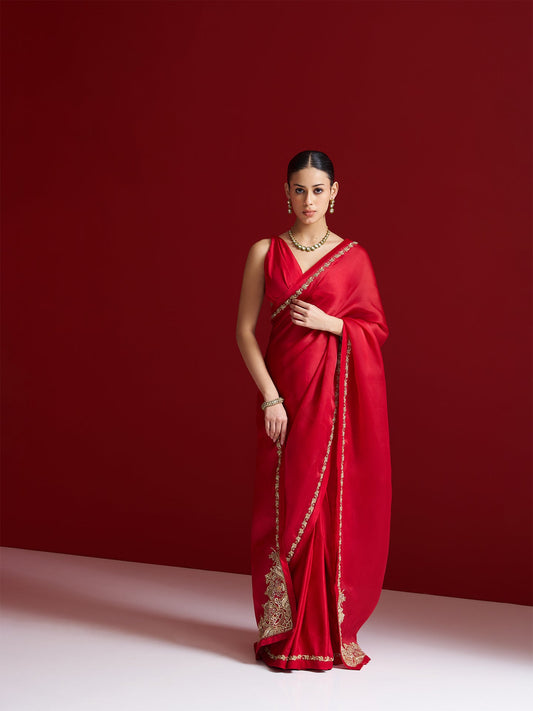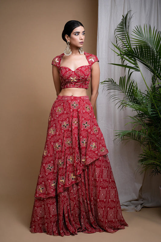 RED BANDHANI DIGITAL PRINT INDO LEHENGA SET (SET OF 2)
