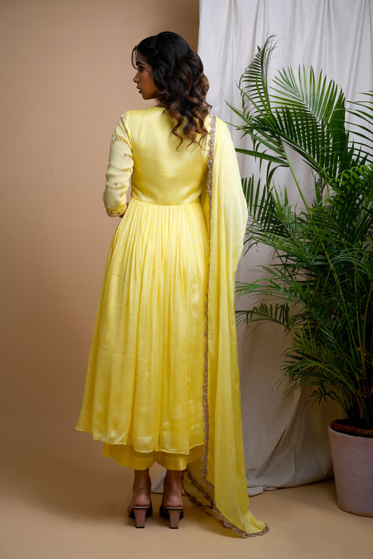 YELLOW CHIFFON ANARKALI SET (SET OF 3)