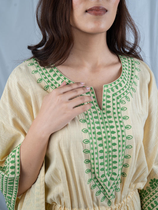 PALM LEAVES ON LEMONADE MIDI DRESS