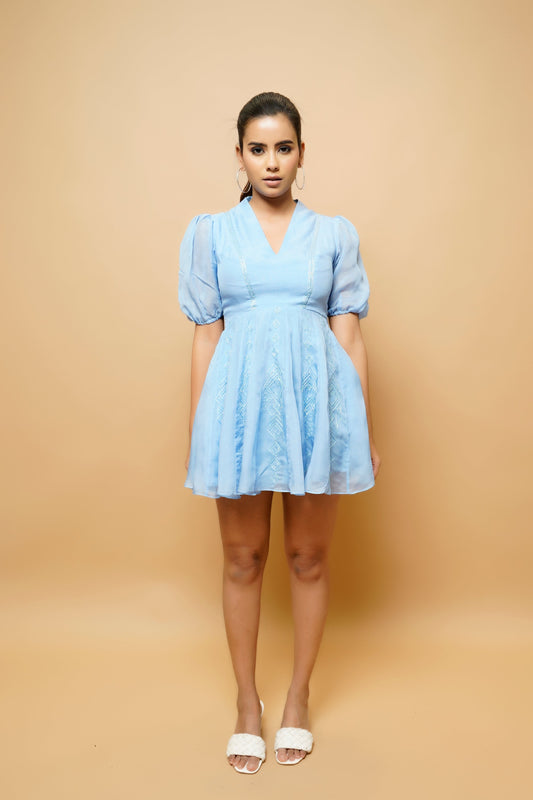 Baby Blue Sheath One-Shoulder Sleeve Tail Dress