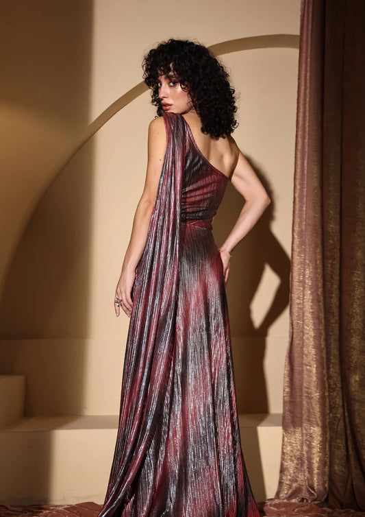 RED PRE-STITCHED DRAPED SAREE