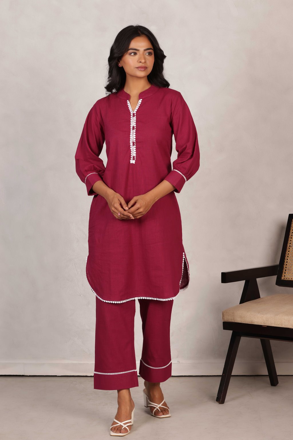 THE "AMYRA CO-ORD SET" IS ALL ABOUT THE DETAILS. DELICATE LACEWORK ADDS A TOUCH OF SOPHISTICATION, TURNING YOUR OUTFIT INTO A STYLISH MASTERPIECE. WITH A NOD TO PAKISTANI STYLE, THIS SET EFFORTLESSLY BLENDS CULTURAL CHARM WITH MODERN FASHION. IT'S LIKE WEARING A PIECE OF ART THAT TELLS A STYLISH STORY. PERFECT FOR YOUR EVERY OUTING. -