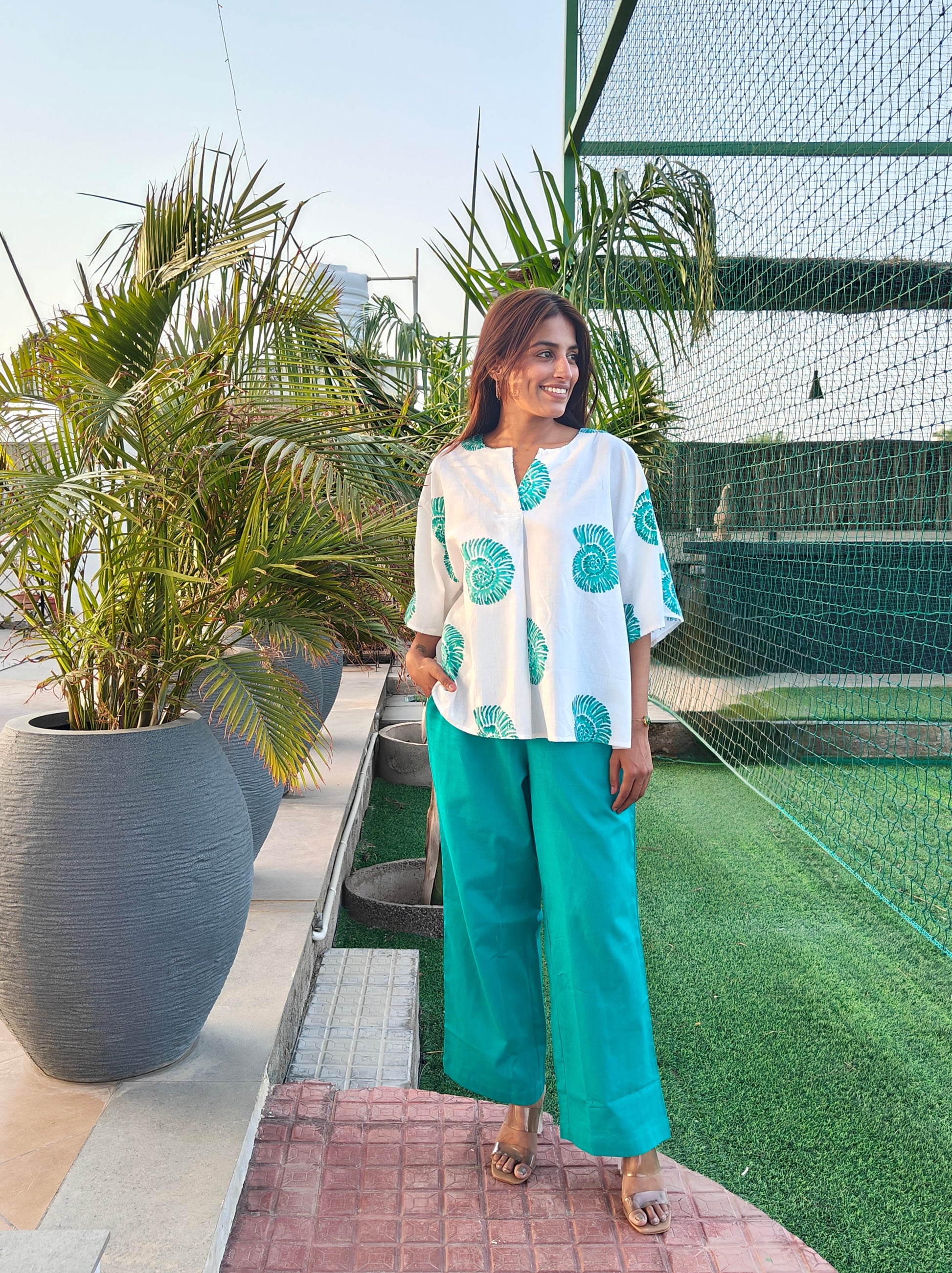 Searching for show-stopping resort wear? Your hunt ends here! Our vibrant solid aqua green pant is the perfect fresh pick for your vacation wardrobe.