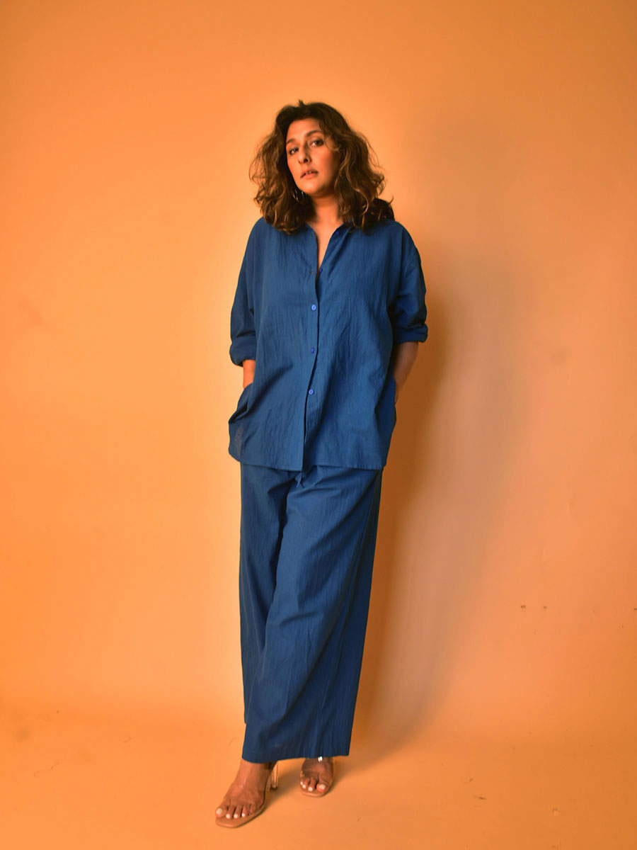 Monochrome pants made for comfort. With an elasticated waist, drawstring tie-up and pockets on both sides, these pants are cut in deep ink blue dyed cotton. Pair with our Aria Shirt for a relaxed beach look.