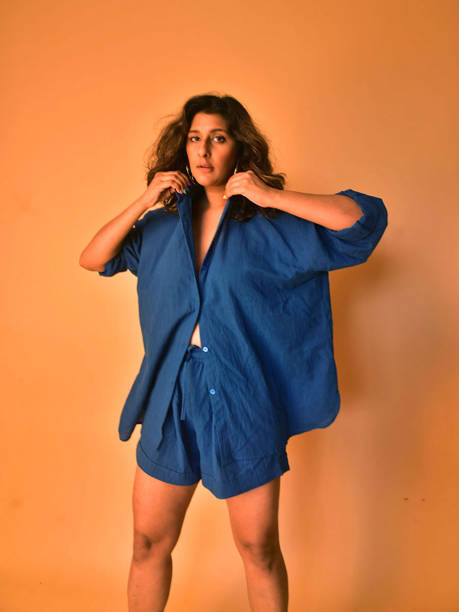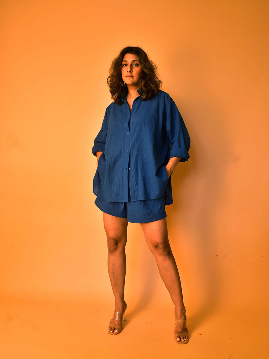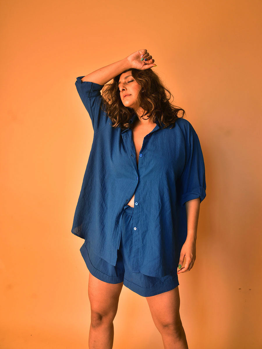 Classic monochrome shorts for effortless styling. With an elasticated waist, drawstring tie-up and pockets on both sides, these shorts are cut in deep ink blue dyed cotton. Pair with our Aria Shirt for a relaxed beach look.