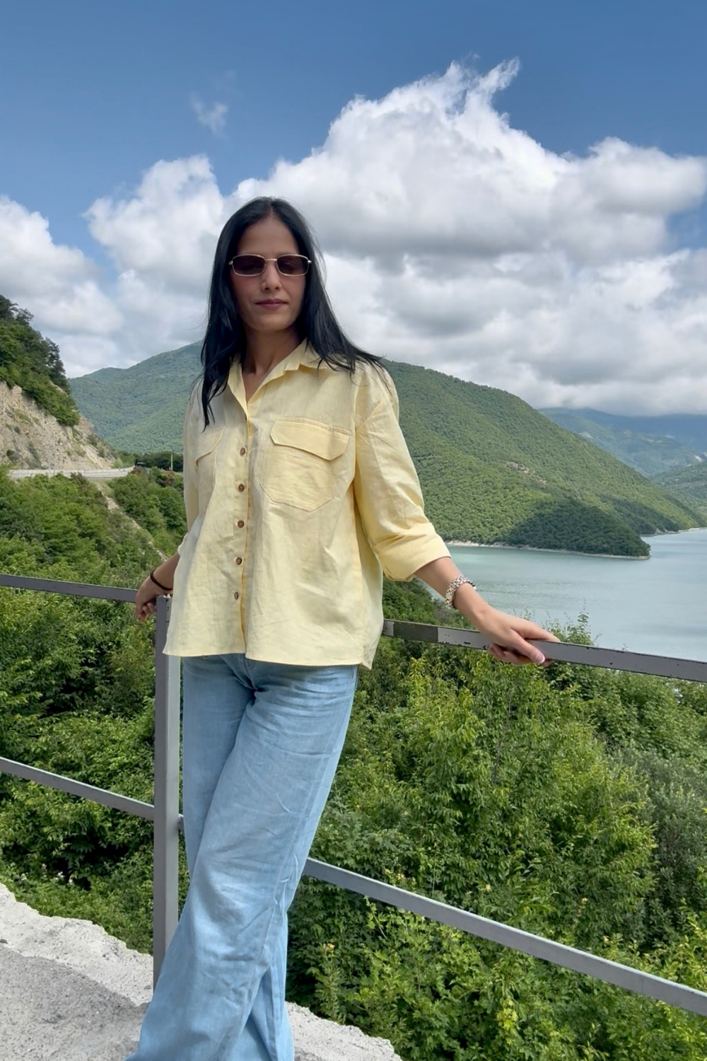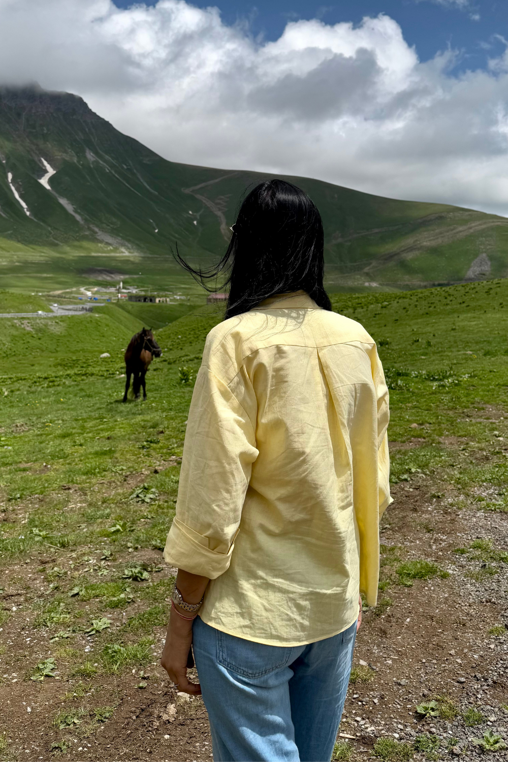 This shirt does it all — just like you. The Banana Buttercup Shirt is your oversized ray of sunshine. With a front-open placket and relaxed silhouette, it’s the kind of piece that adapts to your mood: tie it up, button it down, layer it loose — and let your day unfold.