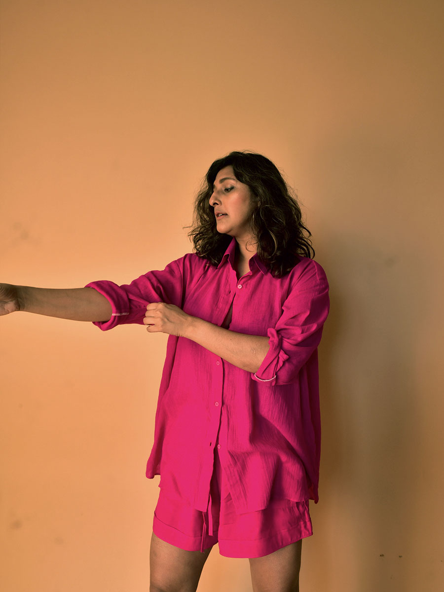 Classic monochrome shorts for effortless styling. With an elasticated waist, drawstring tie-up and pockets on both sides, these shorts are cut in statement pink dyed cotton. Pair with our Bea Shirt for a relaxed beach look.