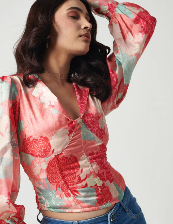 Unleash your inner flower child with the Chelsea Corset Shirt. This stunning top features a bright floral design and a cinched waist, creating a beautiful silhouette. Plus, the tie at the back adds an extra touch of charm. Bring out your playful side with this quirky and beautiful shirt. (Note: shirt does not come with a flower crown, unfortunately.)