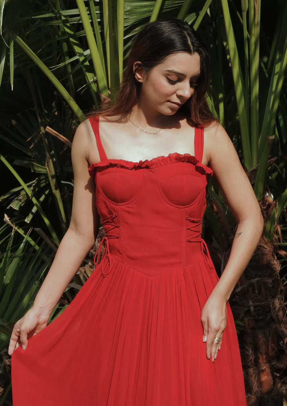 Grace in every seam, daydream dipped in moonbeam — the Clarette dress flatters with frilled details, tie-up sides, and a flowing fit-and-flare silhouette.