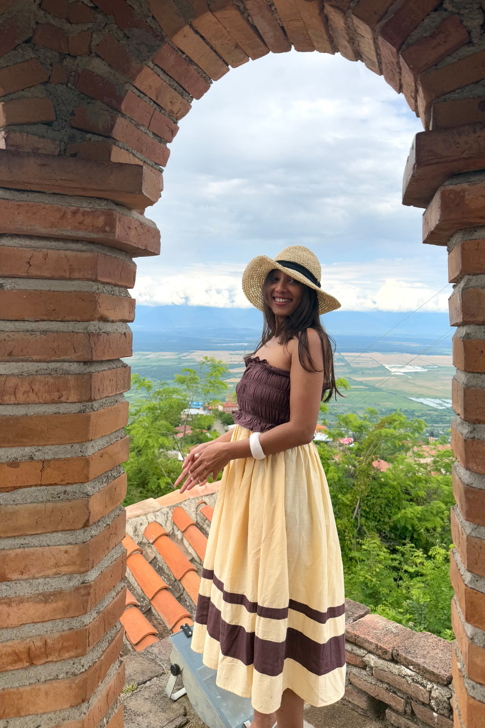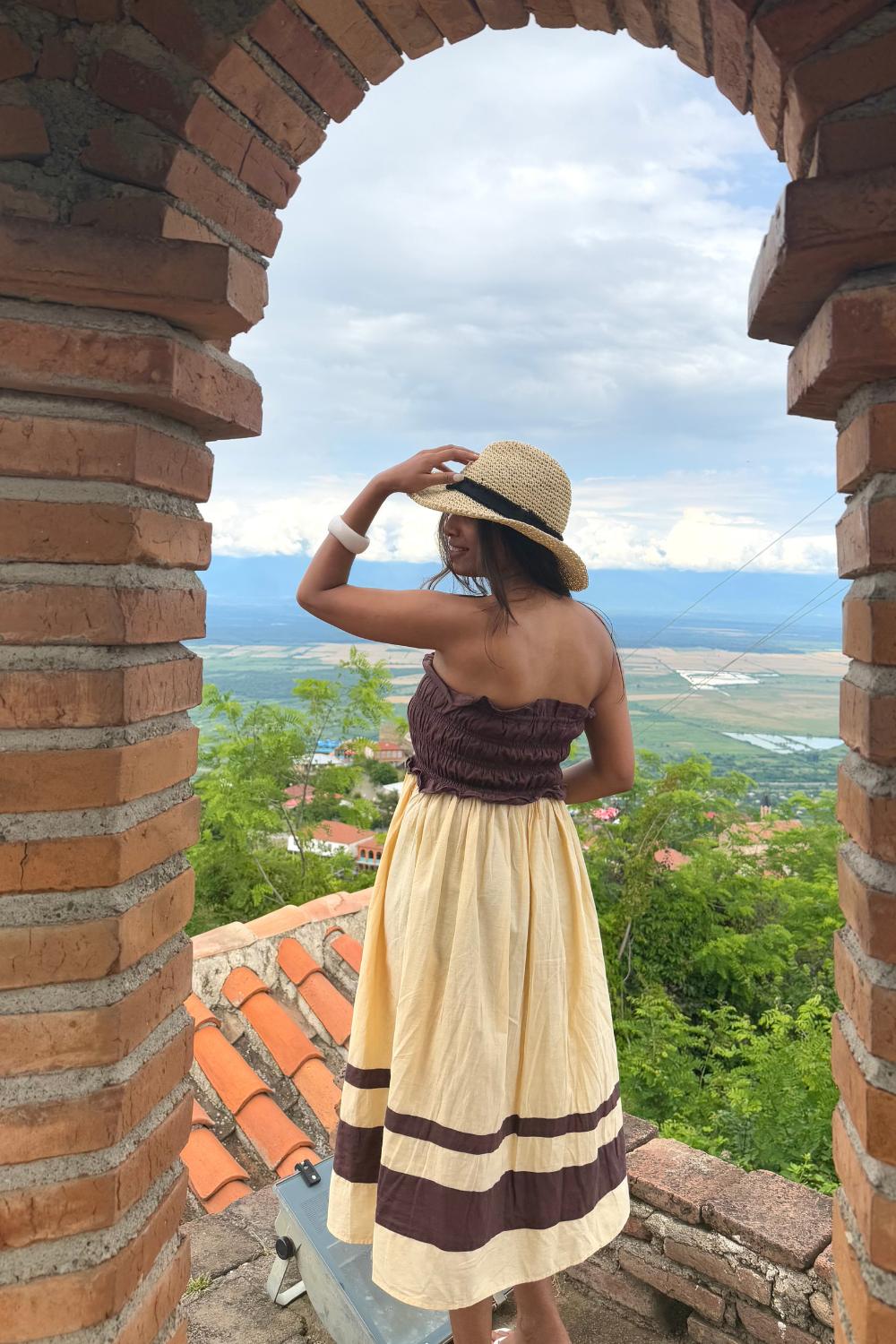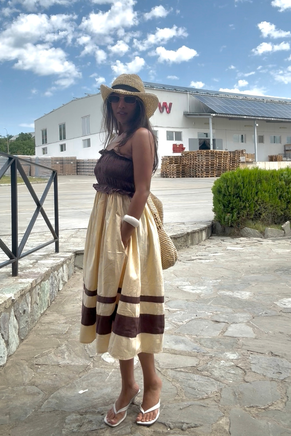 A playful shape-shifter in coco brown and sunshine yellow, Coco Bamba is a multi-functional dream. Wear it as a dress for a carefree day out or style it down as a skirt with your favourite top—either way, it’s comfort with a touch of magic. it’s made to move with you—whether you’re dancing through a festival, heading out for brunch, or chasing sunsets on vacation.