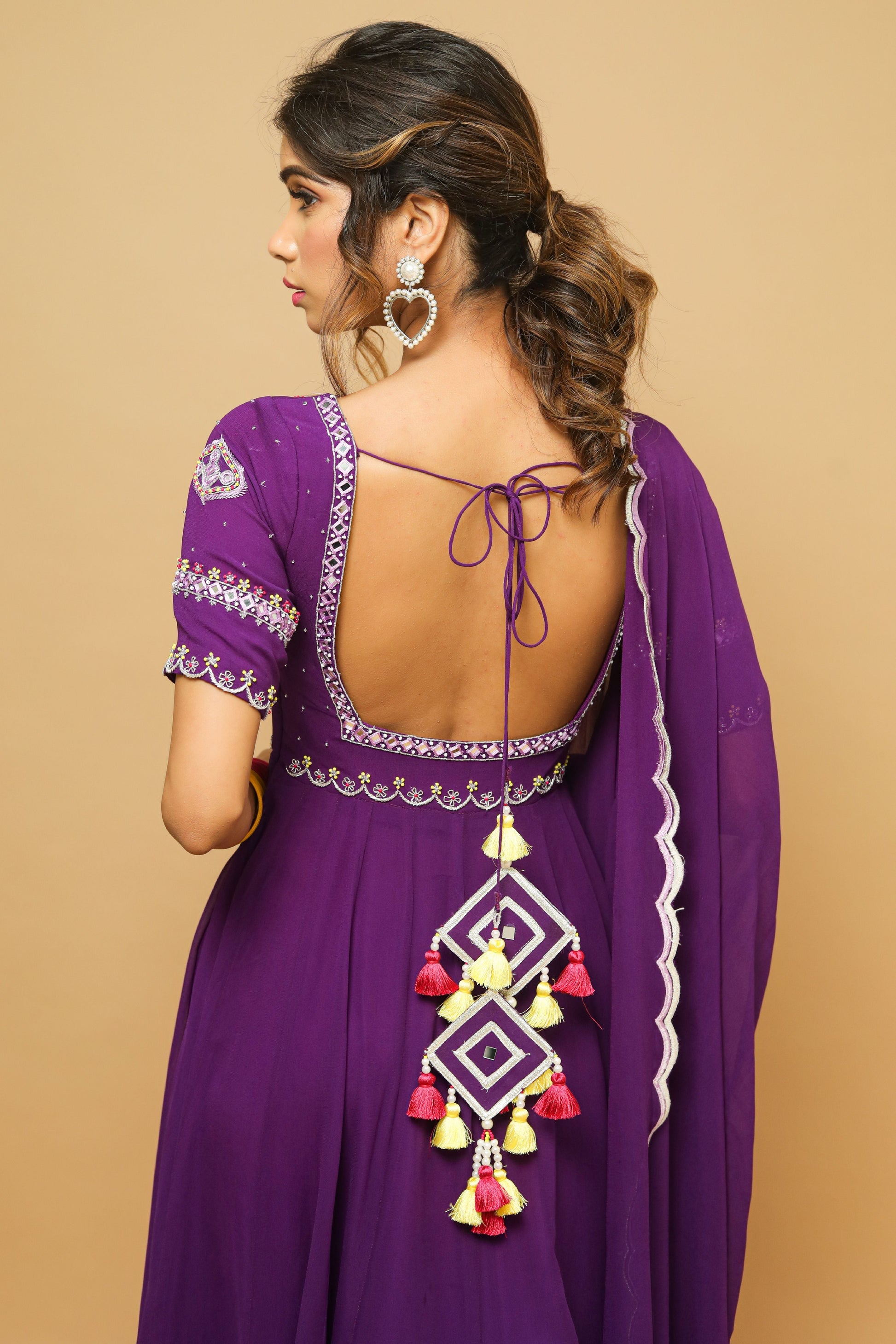 Dark Purple Anarkali Suit Set (Set Of 3)
