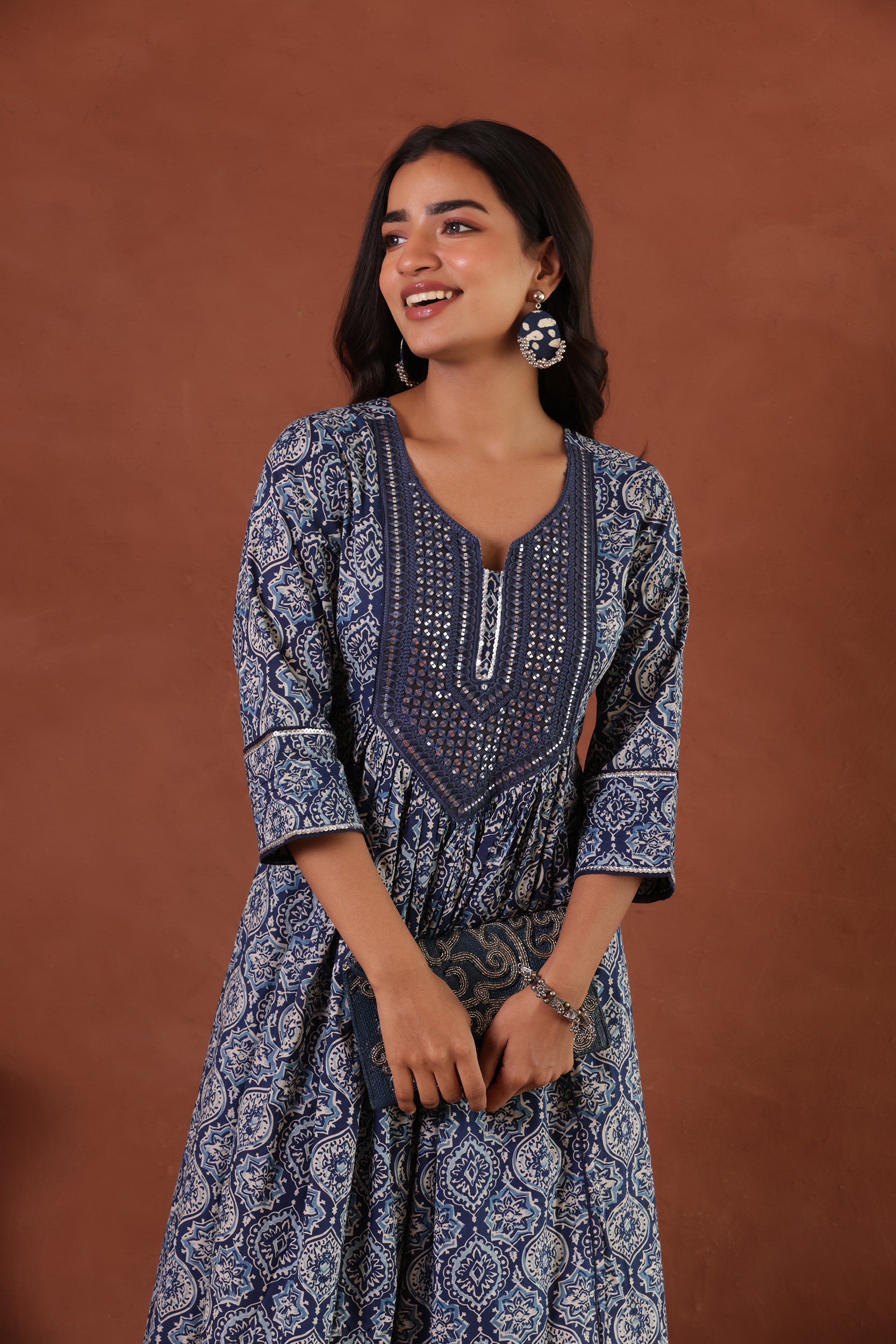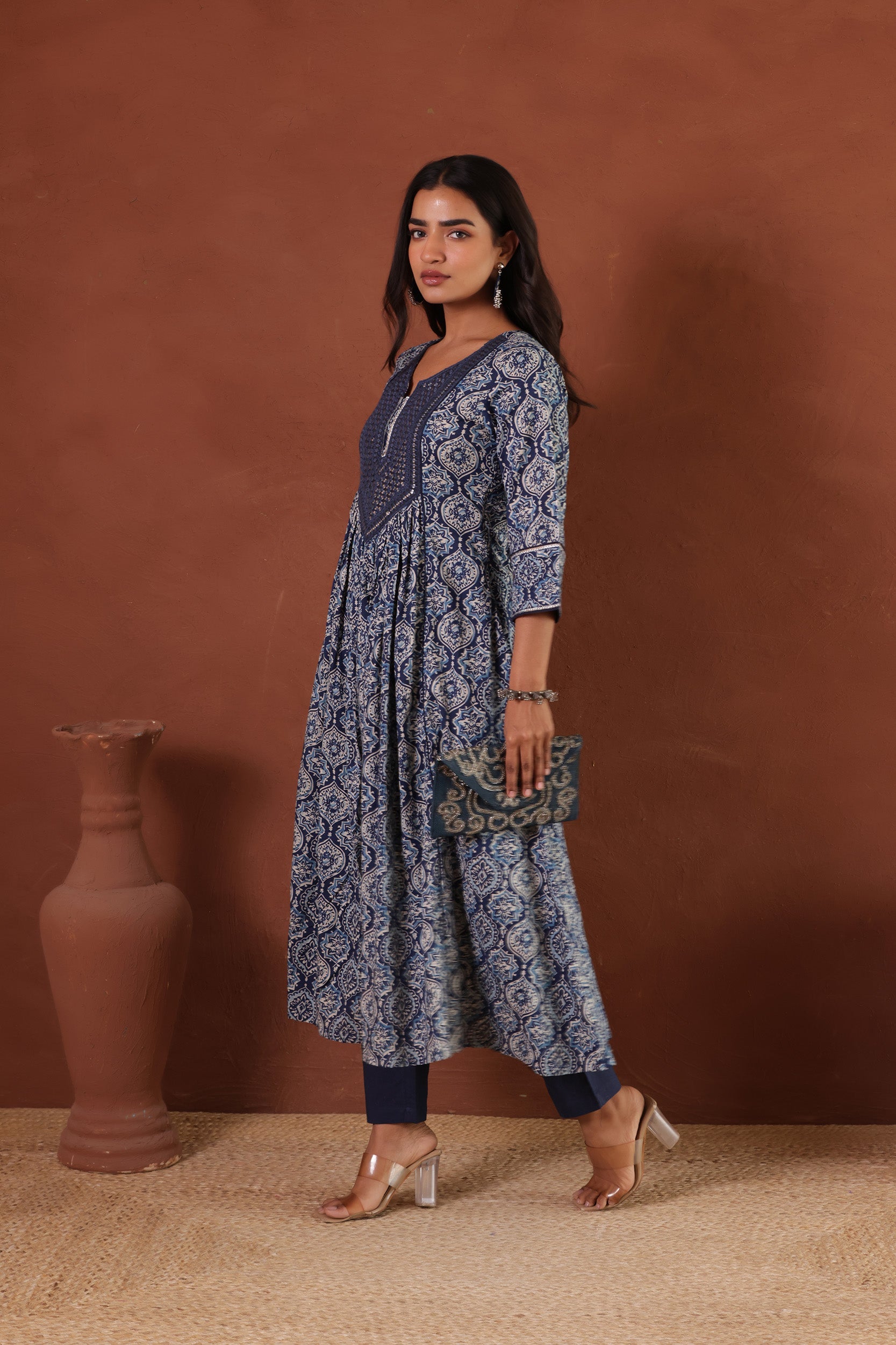 This Sajilo Ajrakh Cotton Kurti Pant Set is a perfect blend of comfort and style. Made with soft cotton fabric, it features a traditional Ajrakh print that adds a touch of elegance. The set includes a beautifully designed kurti and matching pants, ideal for casual or semi-formal occasions. Lightweight and breathable, it ensures you stay comfortable all day long. Perfect for any wardrobe.