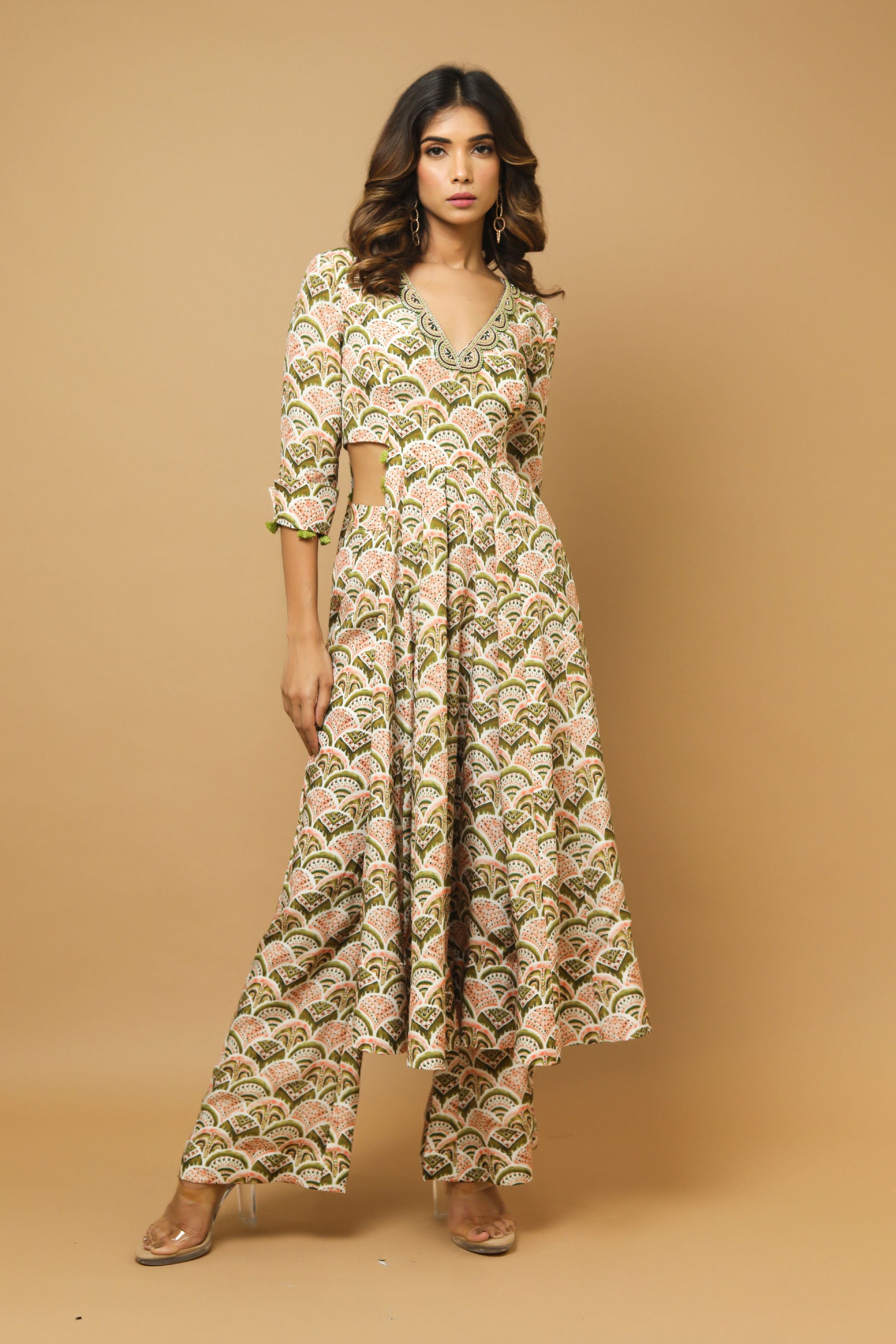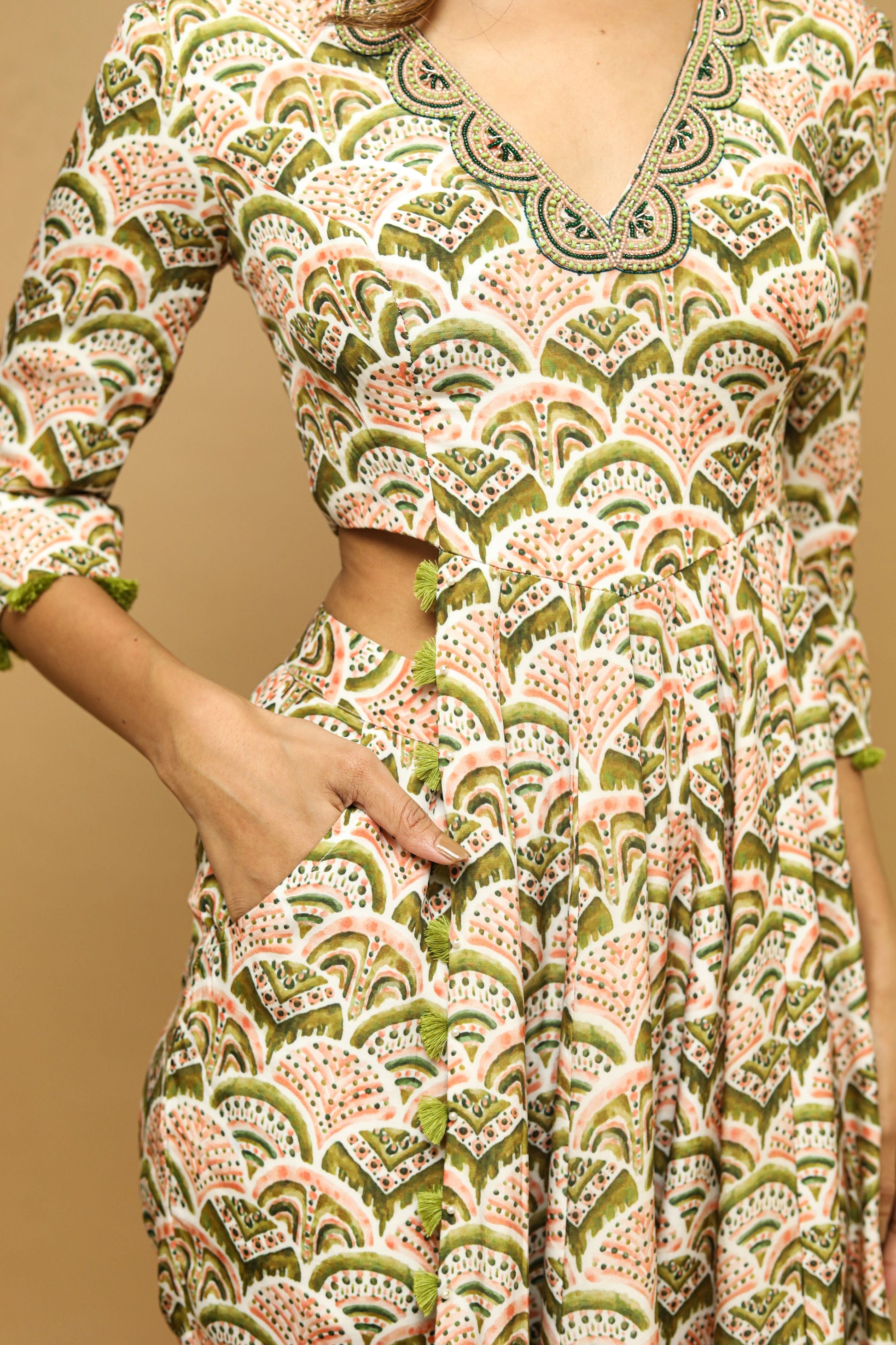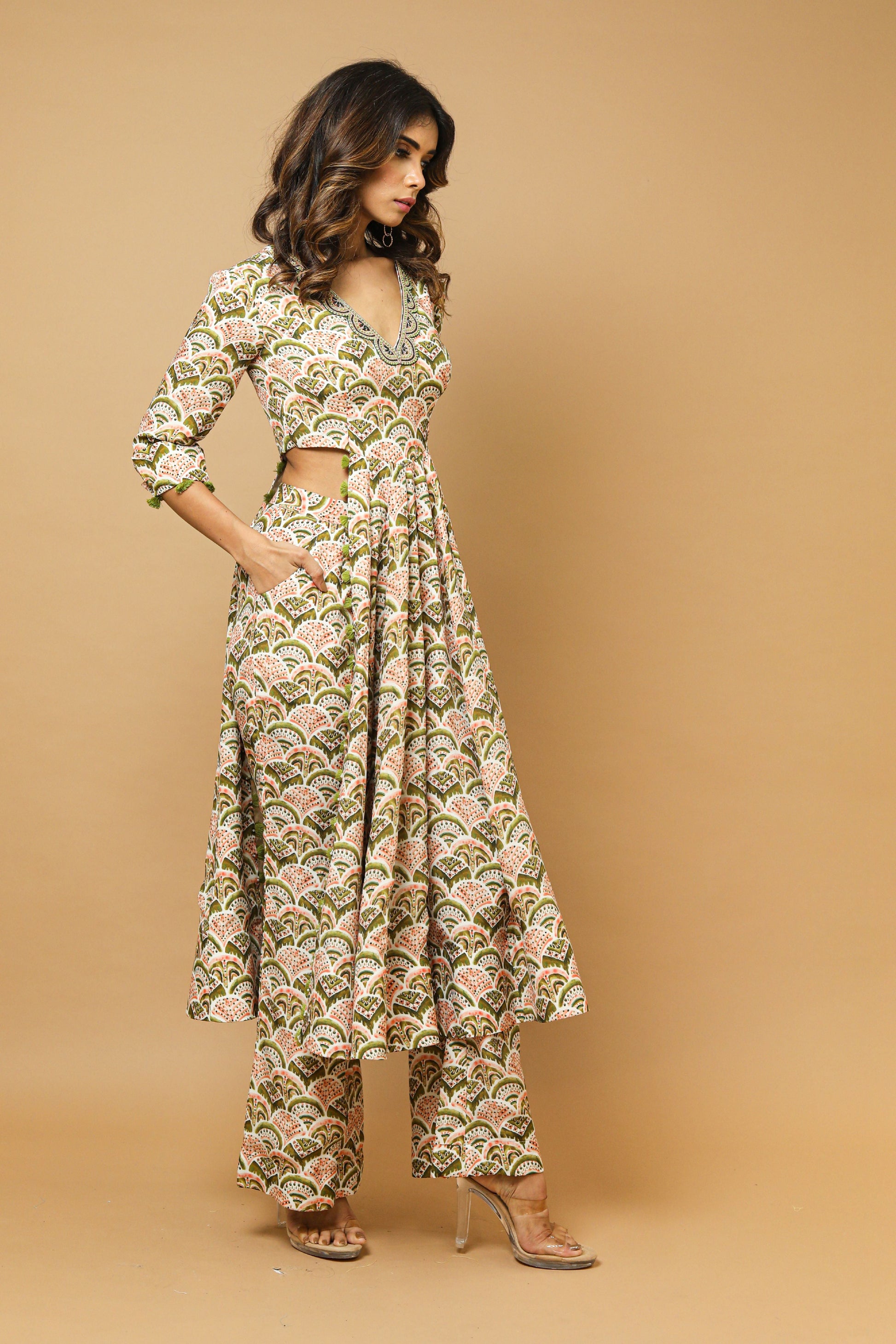 - Padded side cut kali kurta with handwork of beads, zardosi, cutdana, resham and handmade tassel.