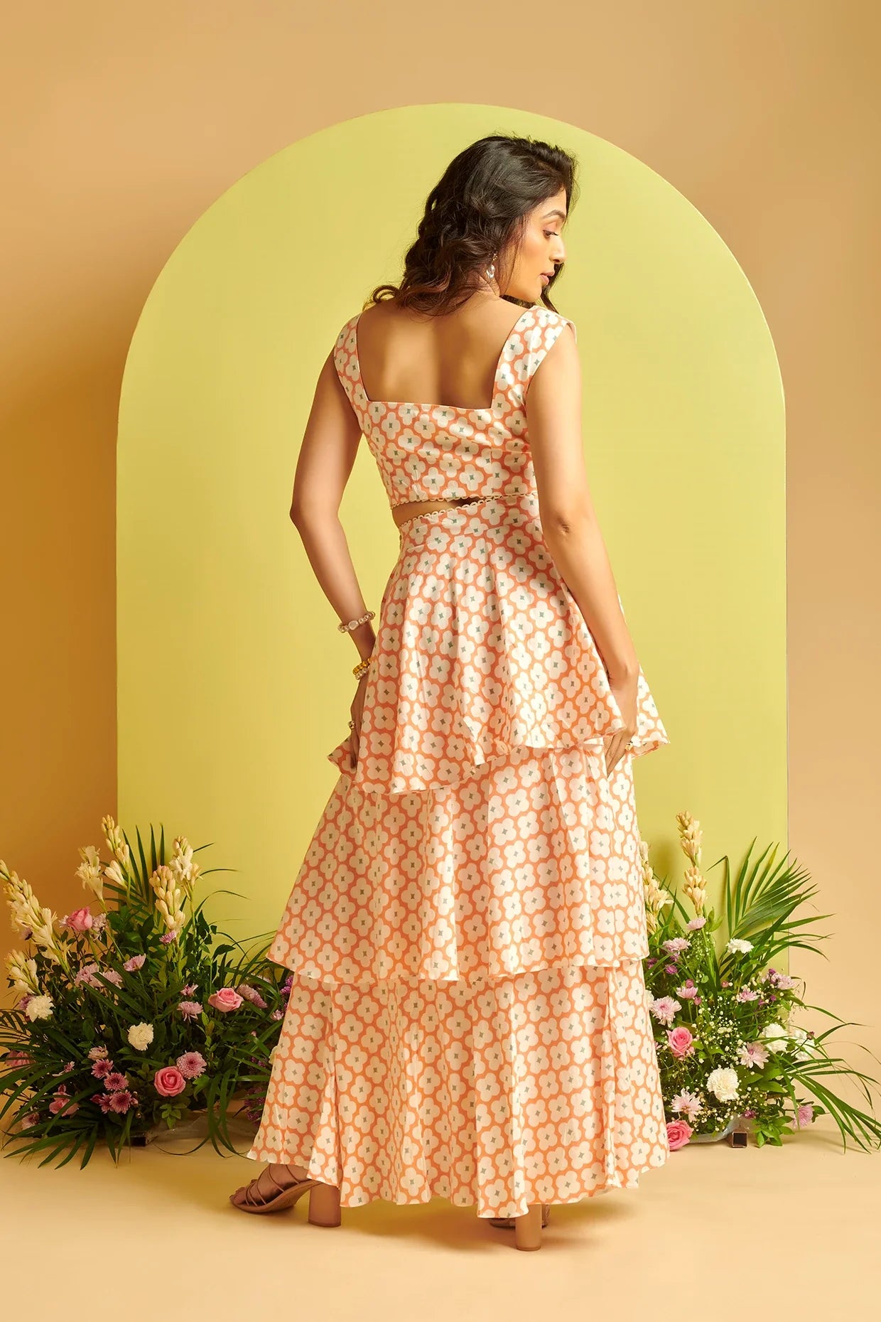 Color: peach and white Lining: Full Lining Model description: model is 5'7" and wears S