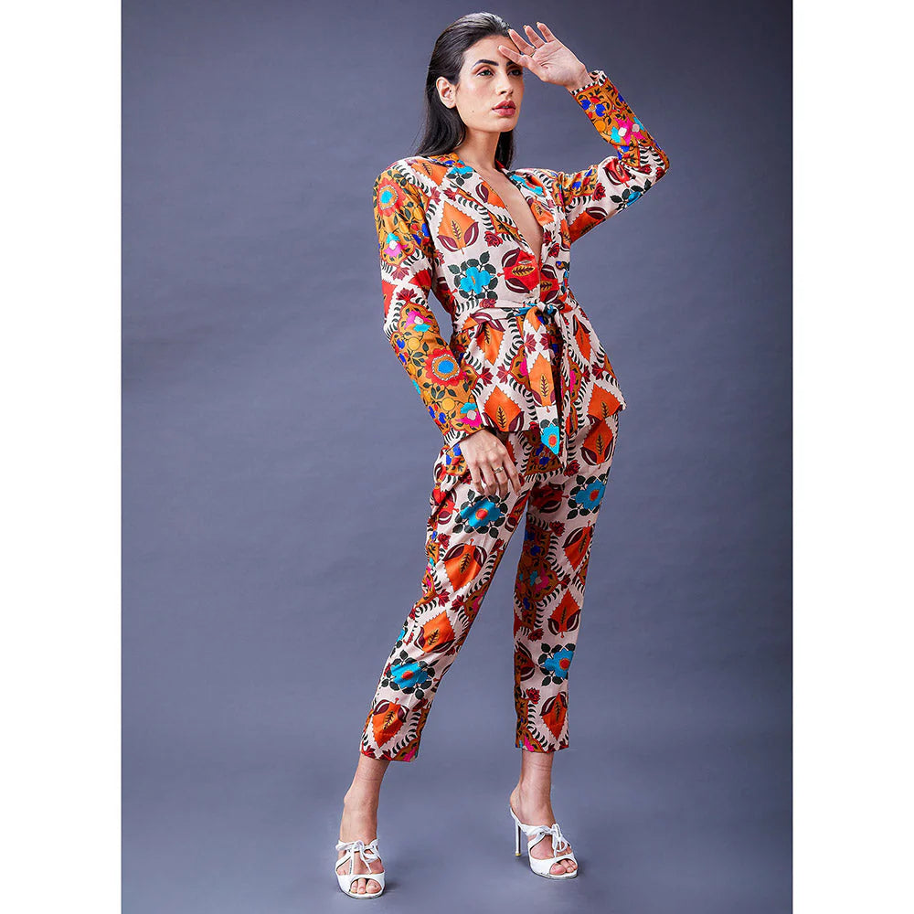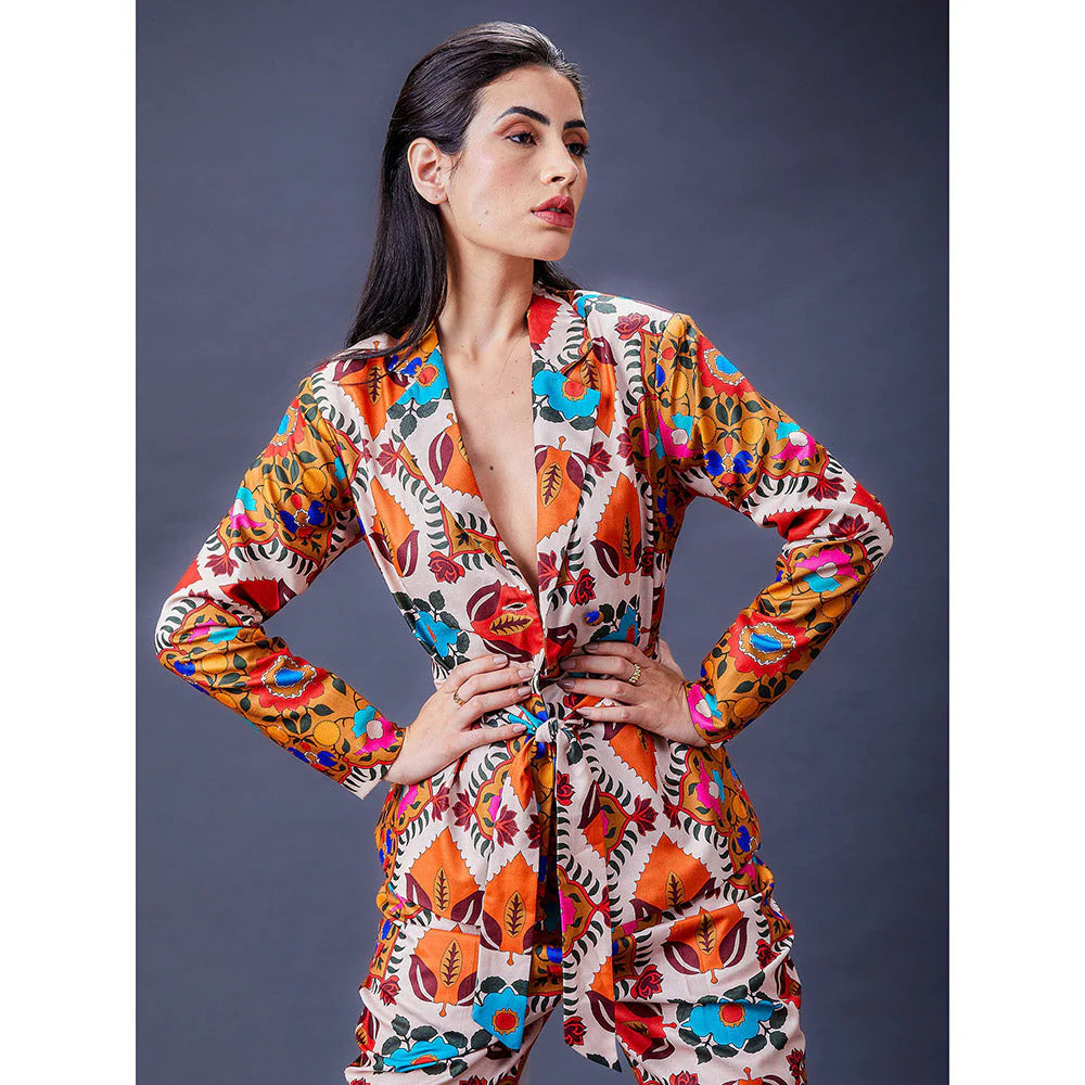 Type : Blazer coord setColour : MulticoloredDetails : Single breasted Print Light Blazer with pantsPattern - Printed
