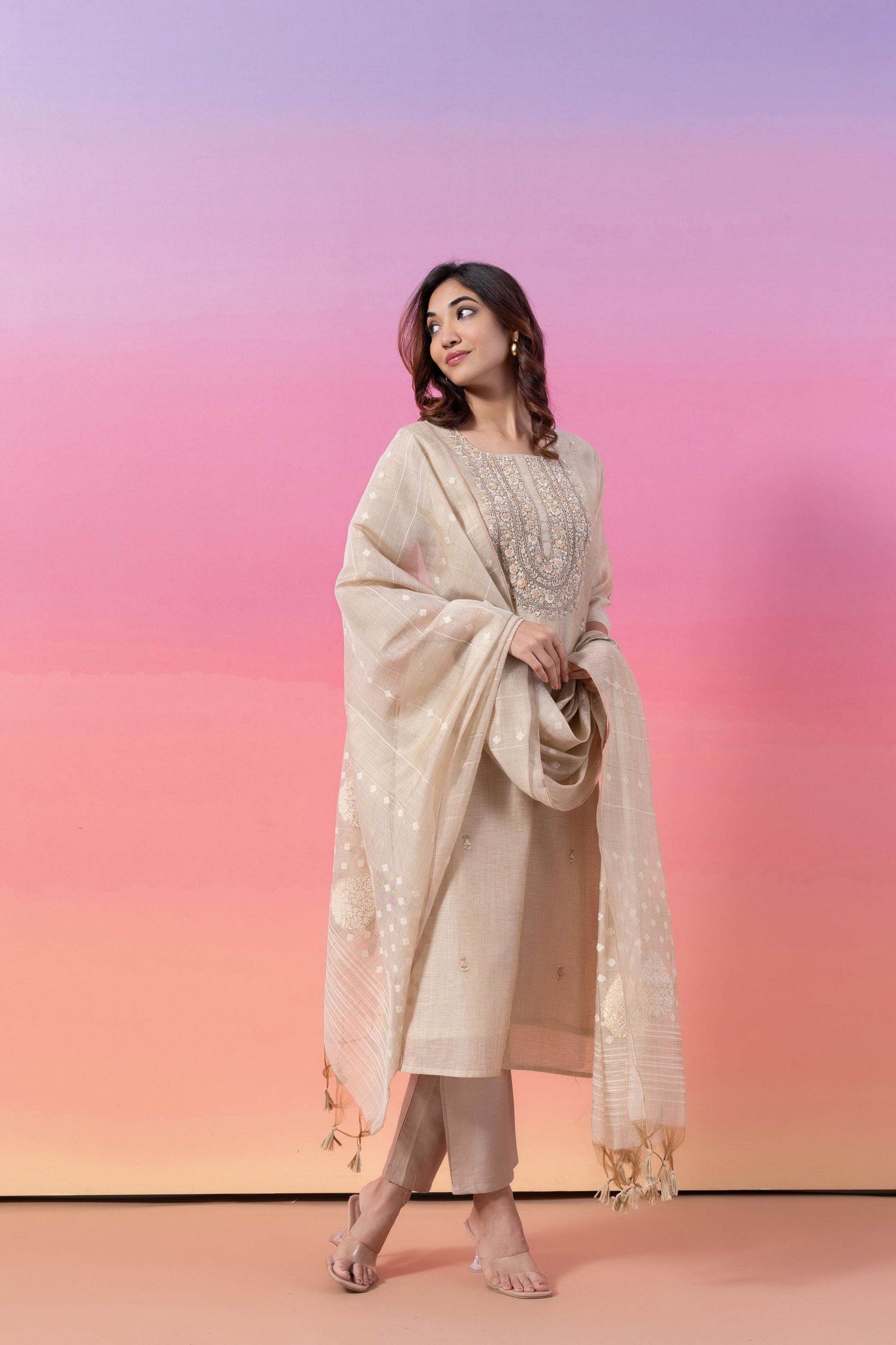 GARDENIA CREAM EMBROIDERED KURTA SET