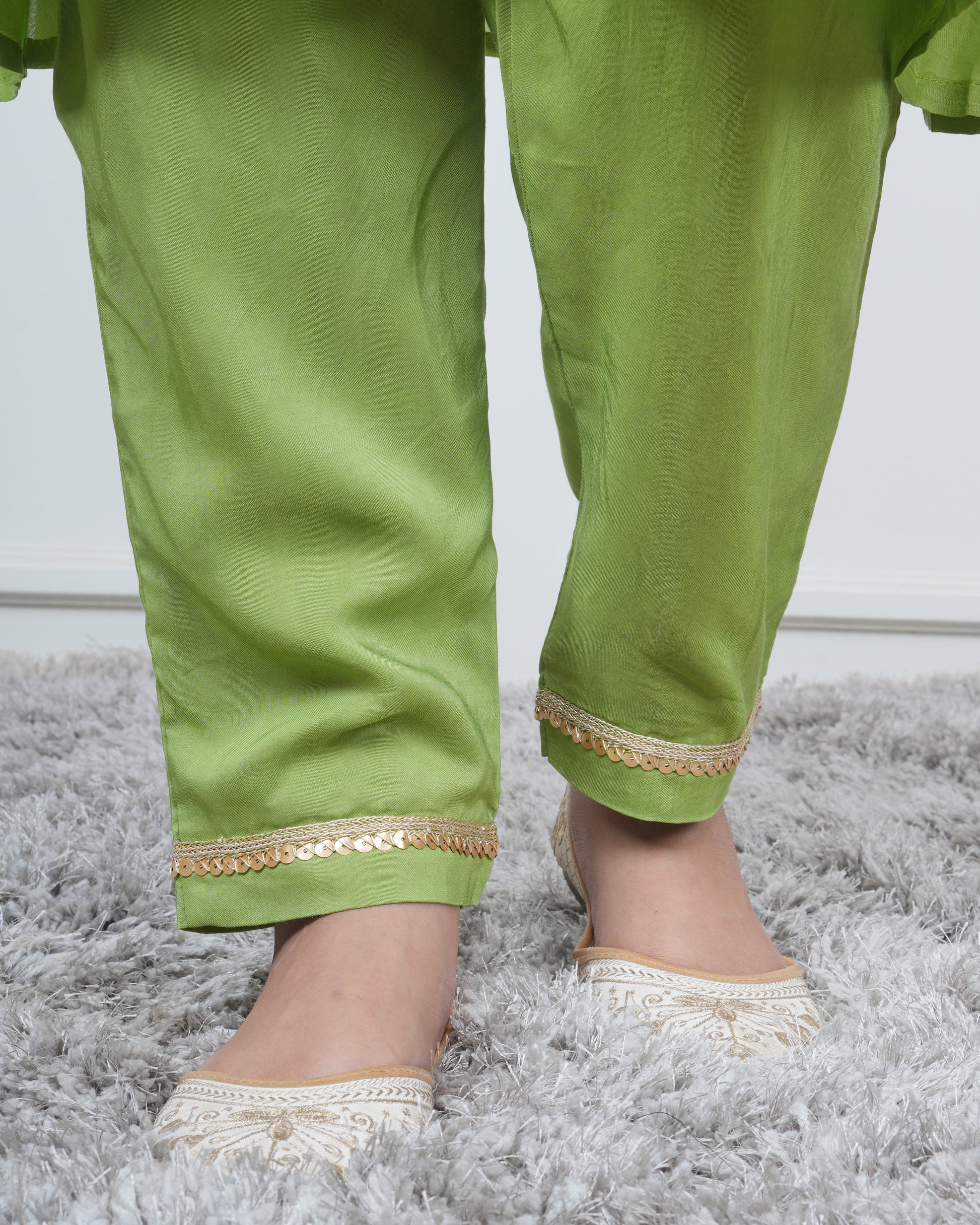 GREEN KALI KURTA SET WITH FIDA DUPATTA