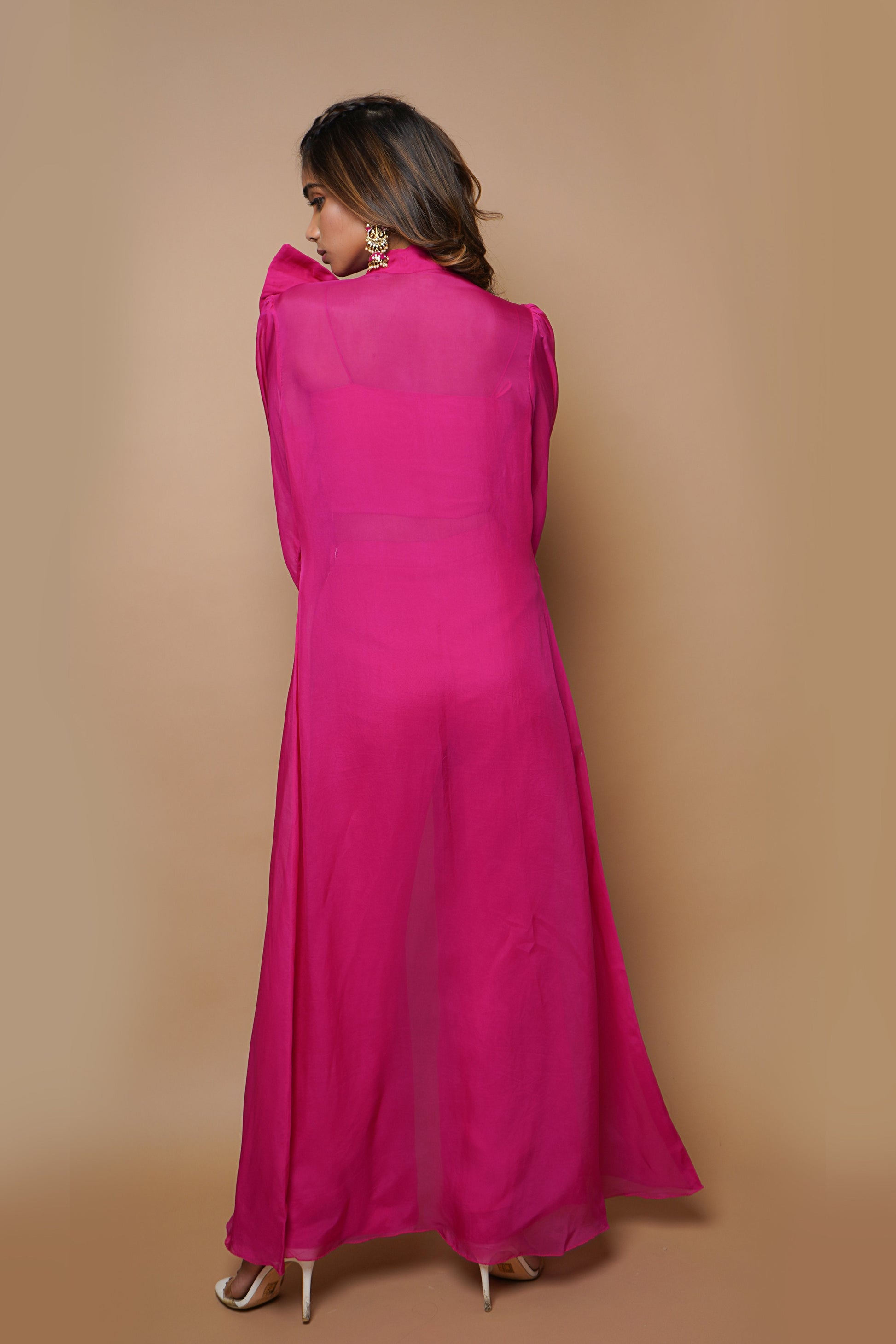Hot Pink Cape Indowestern Set- (Set Of 4)