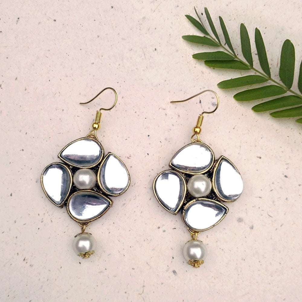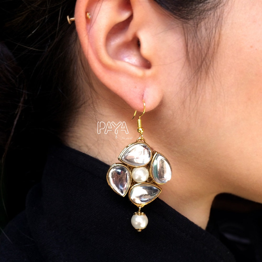 Kundan and Pearl Drop Earrings