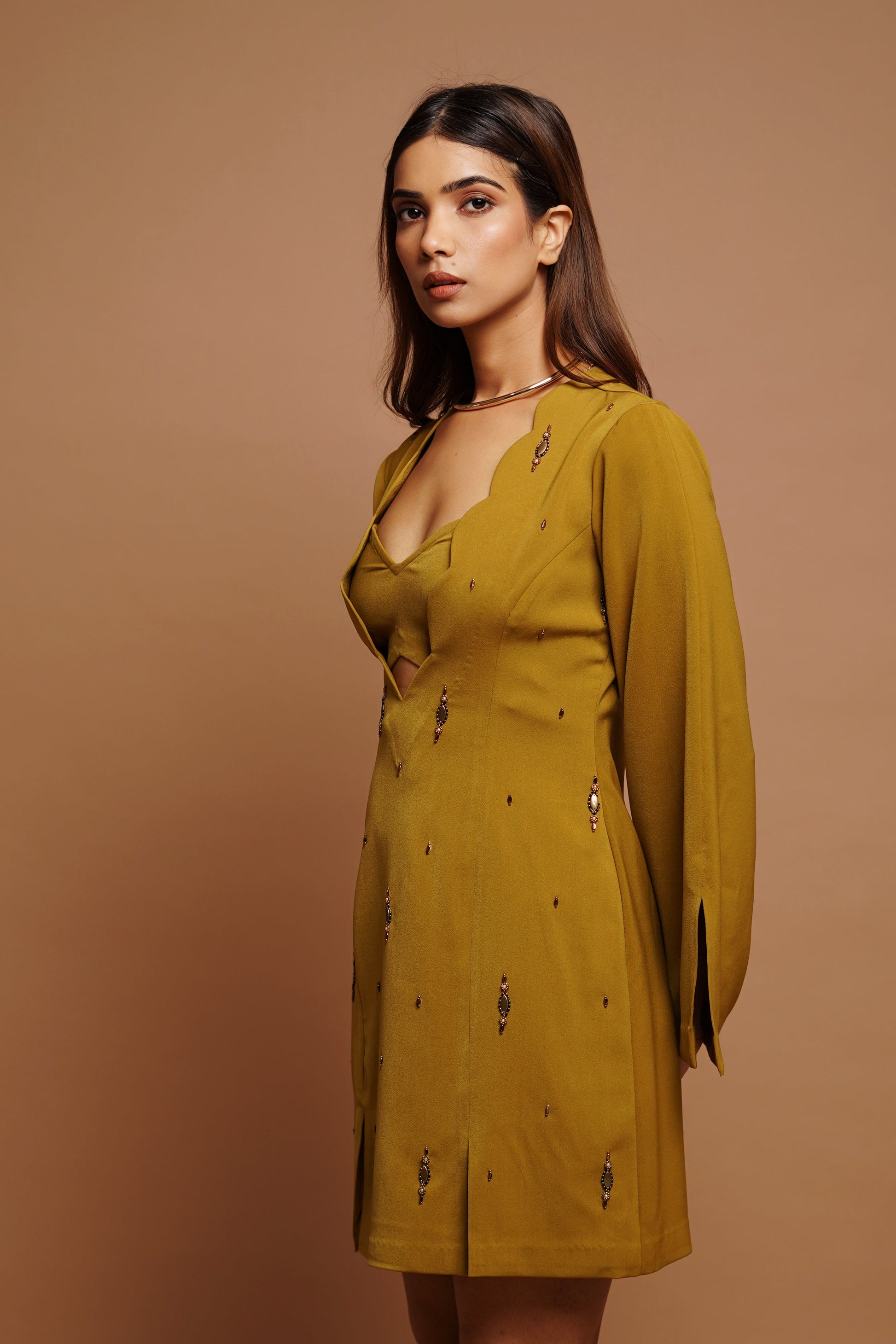 - Deep neckline detailing