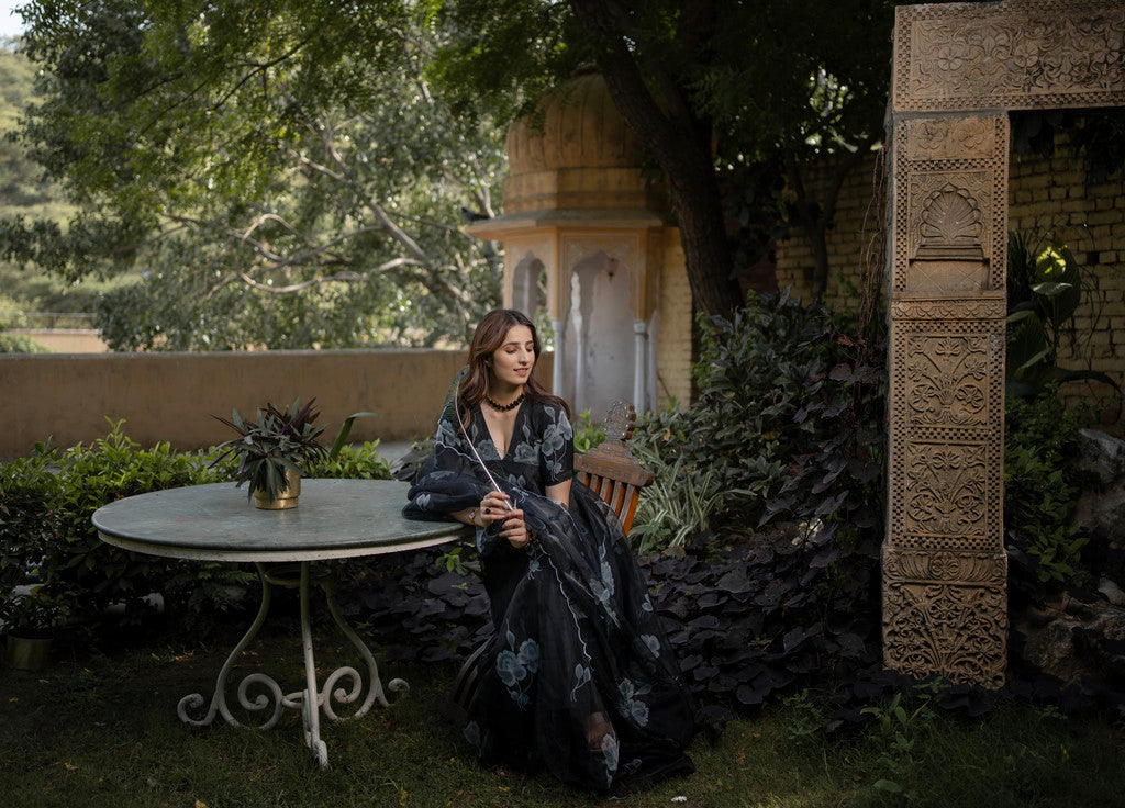 OUR NIGHTINGALE ORGANZA SUIT SET IN TIMELESS BLACK, A REAL GEM FROM OUR COLLECTION MAY EMBRACE YOU WITH FOREVER SOPHISTICATION. THIS BEAUTIFUL AND ADAPTABLE DESIGN WILL INSTANTLY ELEVATE YOUR LOOK AND WILL MAKE THE PERFECT ENSEMBLE FOR BOTH FESTIVE AND CASUAL Occasion.