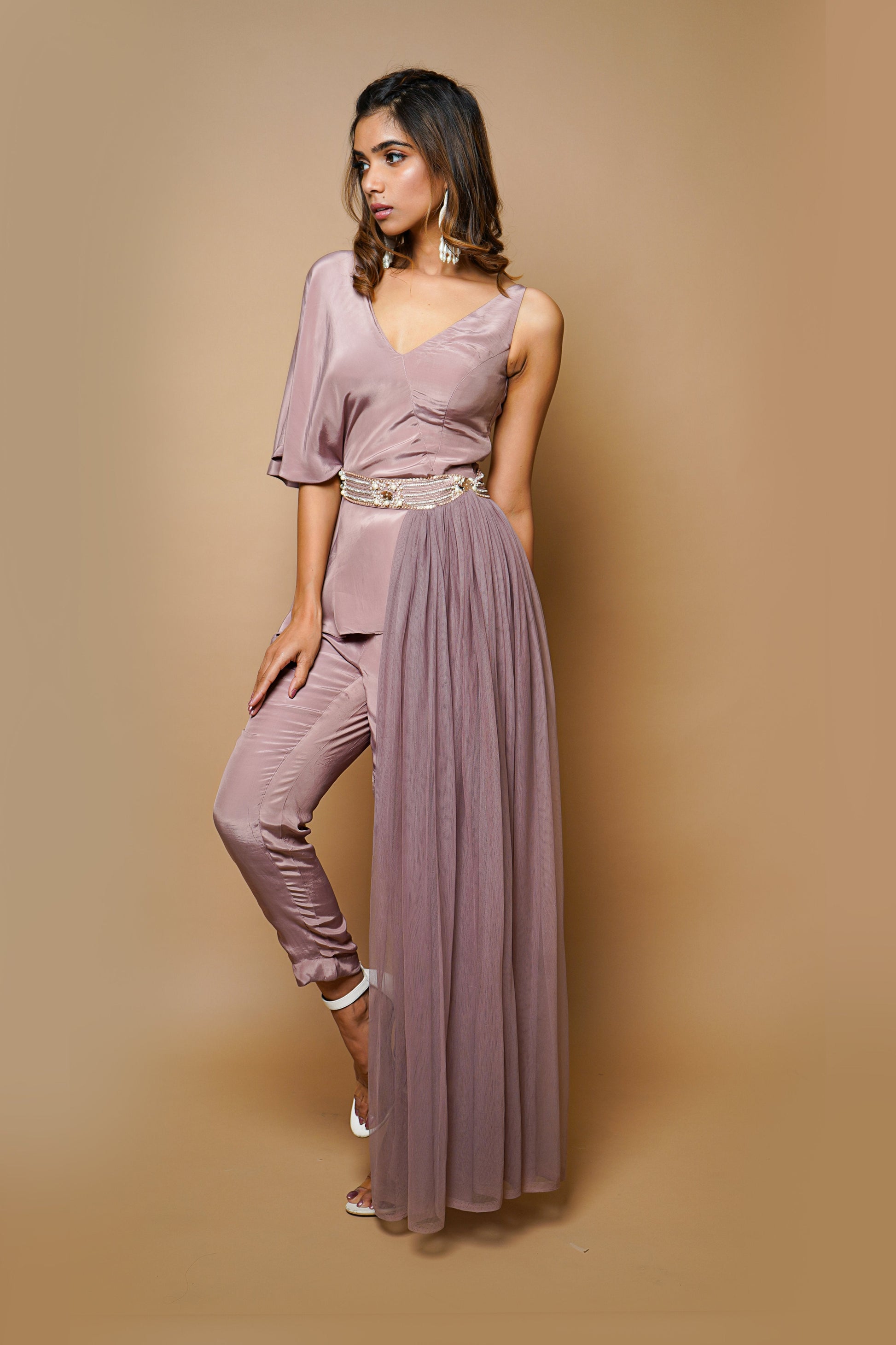 - Sleeves: One side flowing sleeves and one side Sleeveless