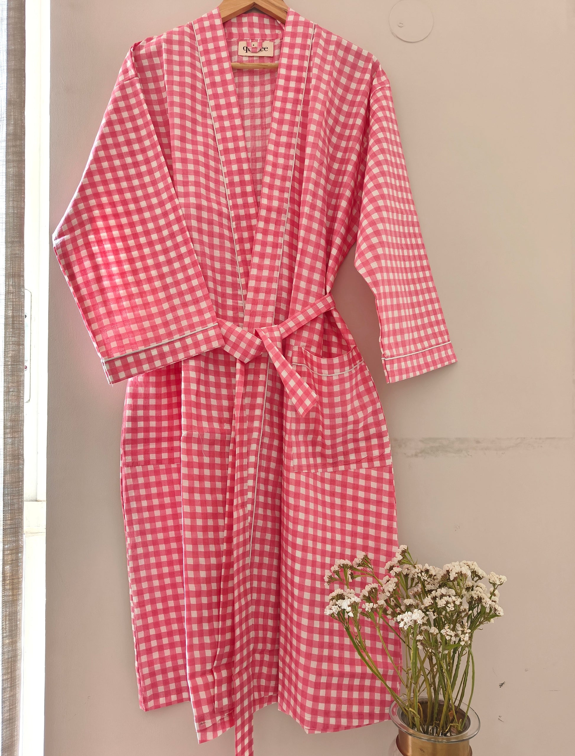Our light weight checks print Robe/Housecoats are perfect for lounging around the home or spa. Use the robe as a cover up on the beach or after a dip in the pool, or at home before or after the shower or for your makeup and hair sessions.