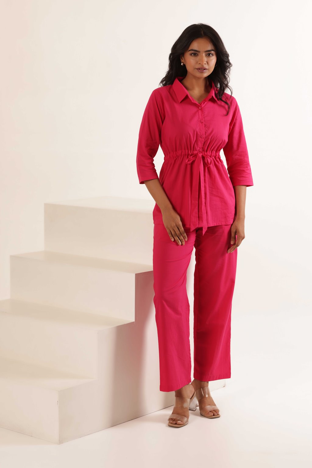 MEET OUR PINK CHILLY CO-ORD SET – YOUR NEW FASHION BFF FOR THOSE CHILL DAYS WITH A POP OF PINK PERFECTION! THIS SET IS ALL ABOUT COMFY VIBES AND COOL STYLE, GIVING YOU AN INSTANT HEAD-TO-TOE FABULOUS LOOK WITHOUT ANY EFFORT.PERFECT FOR WORK, PLAY, OR JUST A CHILL DAY – BECAUSE WHO SAYS FASHION CAN'T BE EASY? - Sajilo