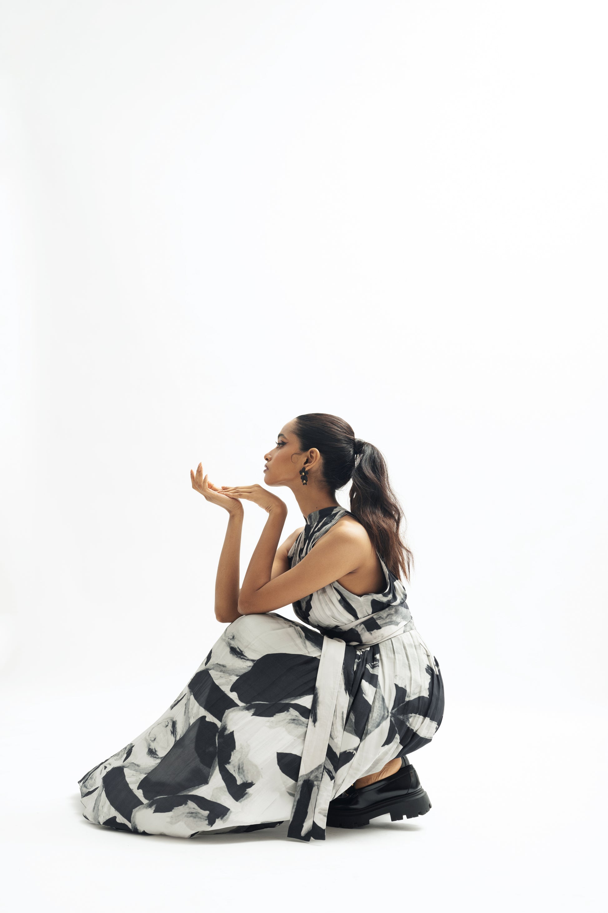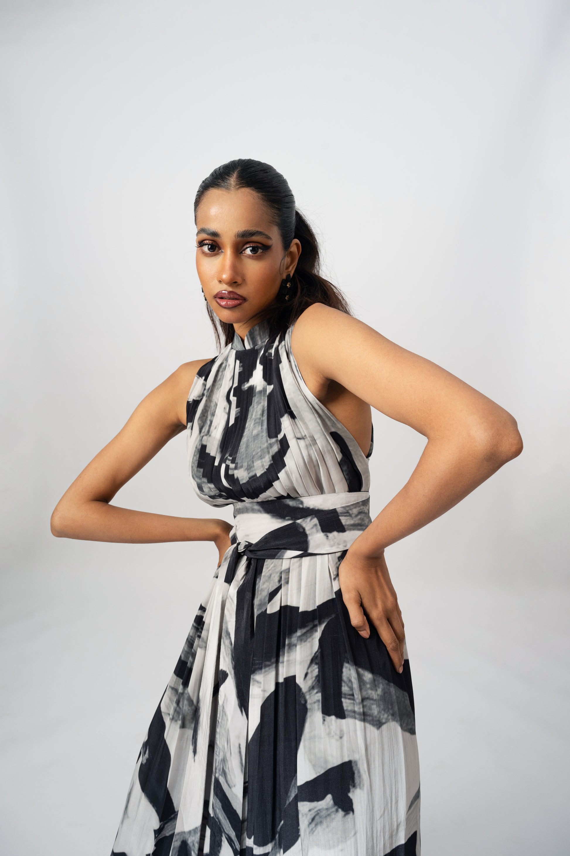 Pleated dress halter neck