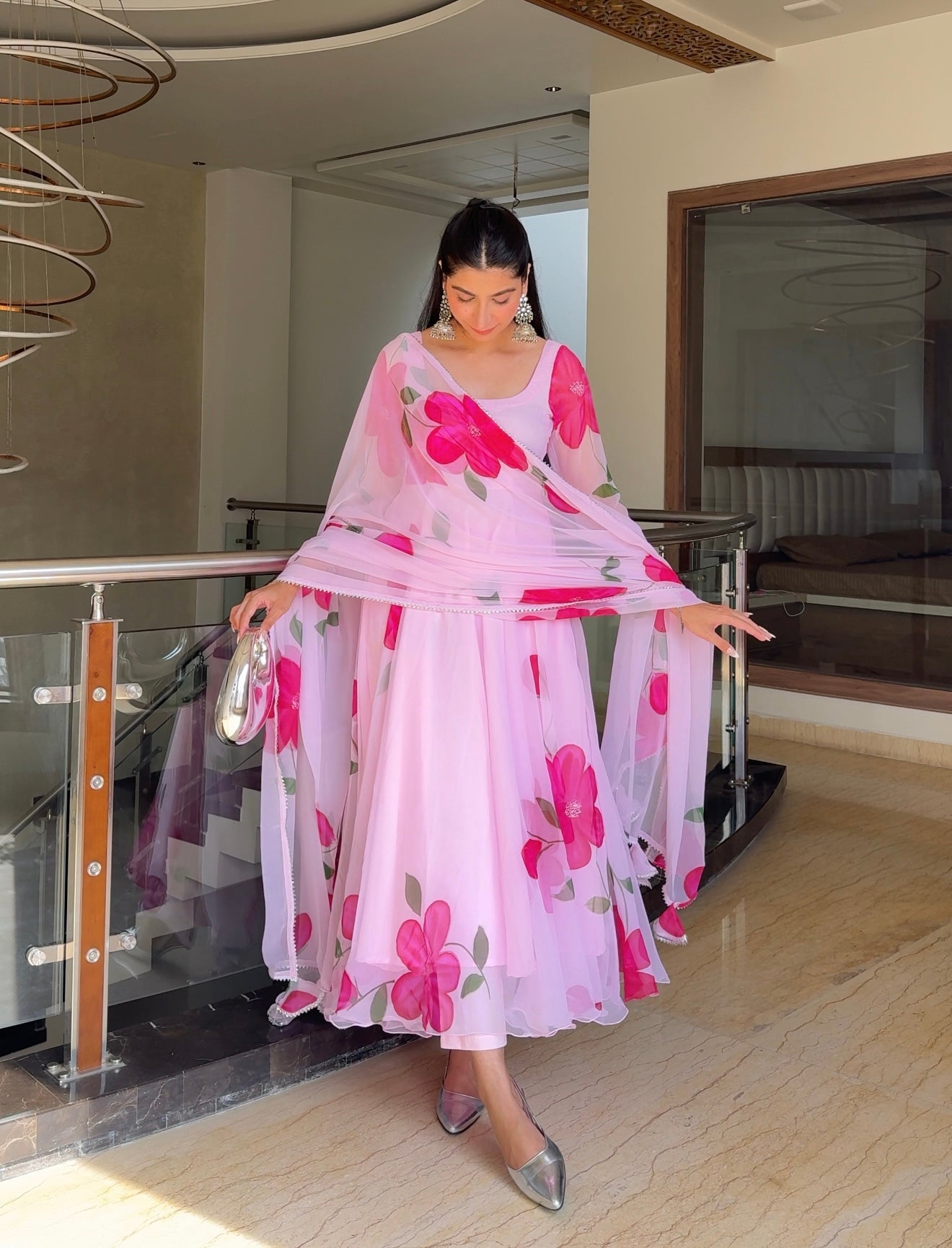 Elevate your style with the Rani Handpainted Pure Georgette Suit Set. Crafted from pure georgette fabric, this set showcases beautifully hand-painted details in vibrant colors. It includes a graceful top, matching pants and a elegant dupatta. Ideal for any special occasion, this outfit offers both artistic flair and lightweight comfort.
