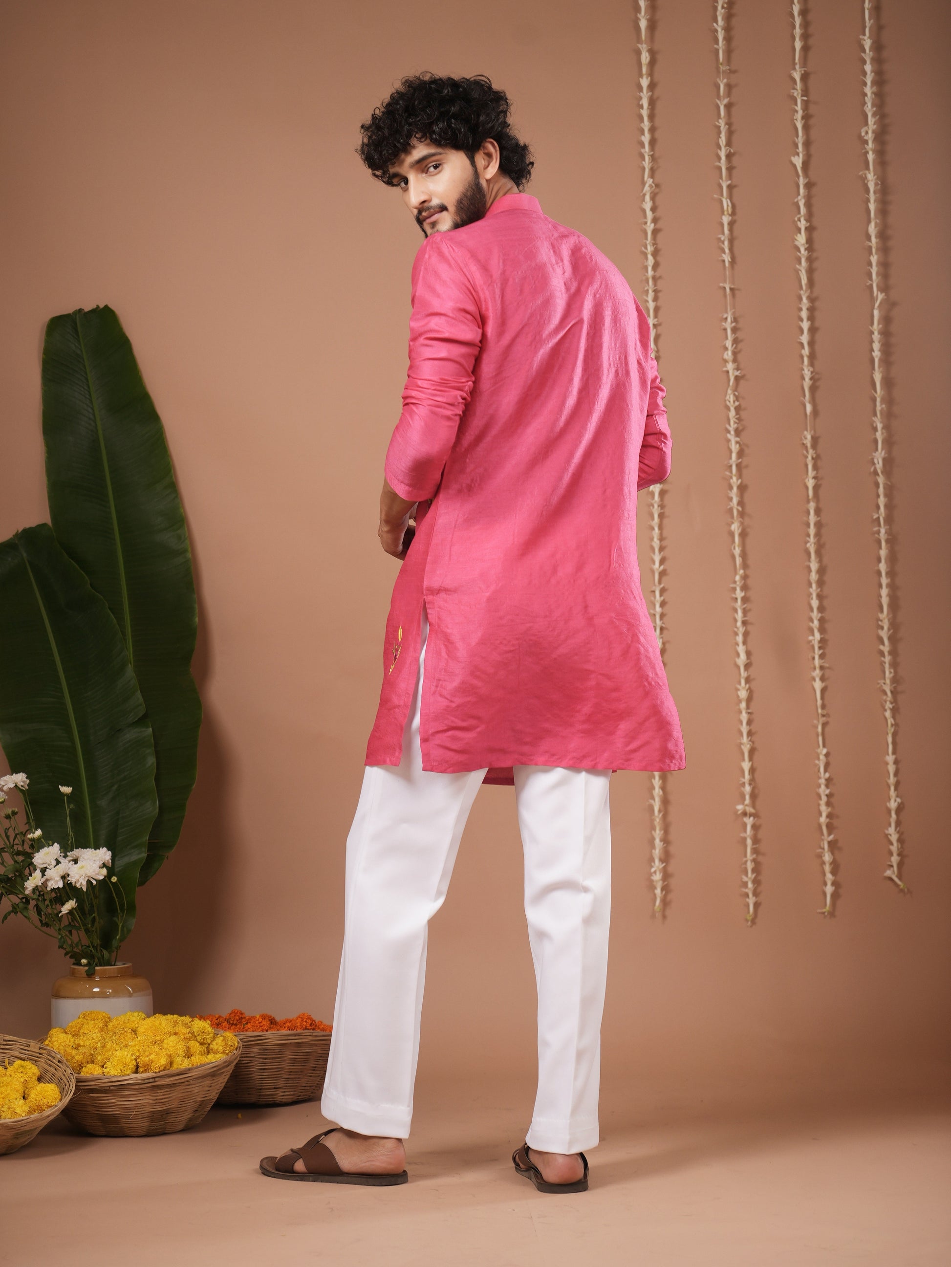 Bright rani pink kurta.