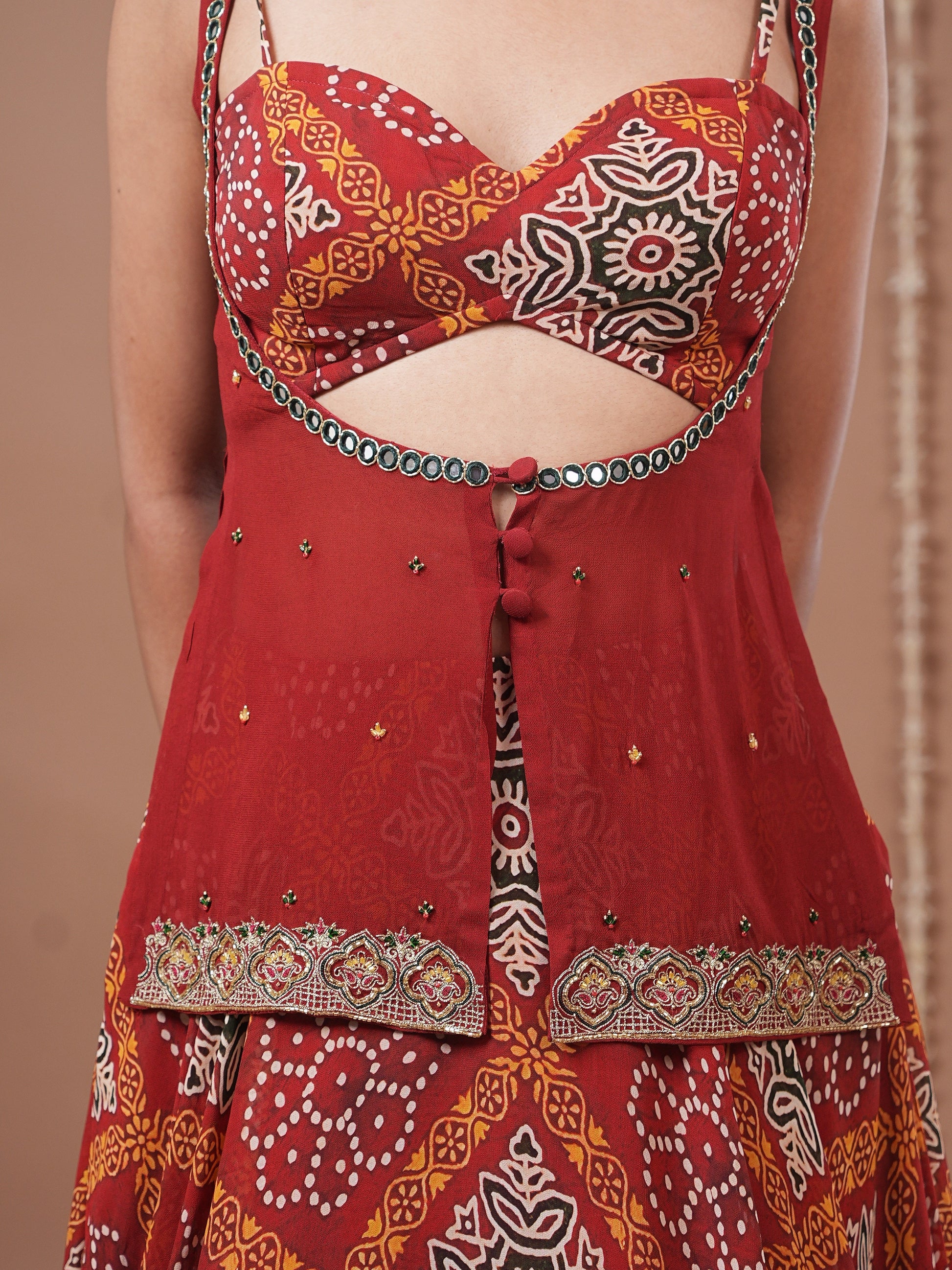 Red Bandhani Printed Lehenga Set (Set of 3)
