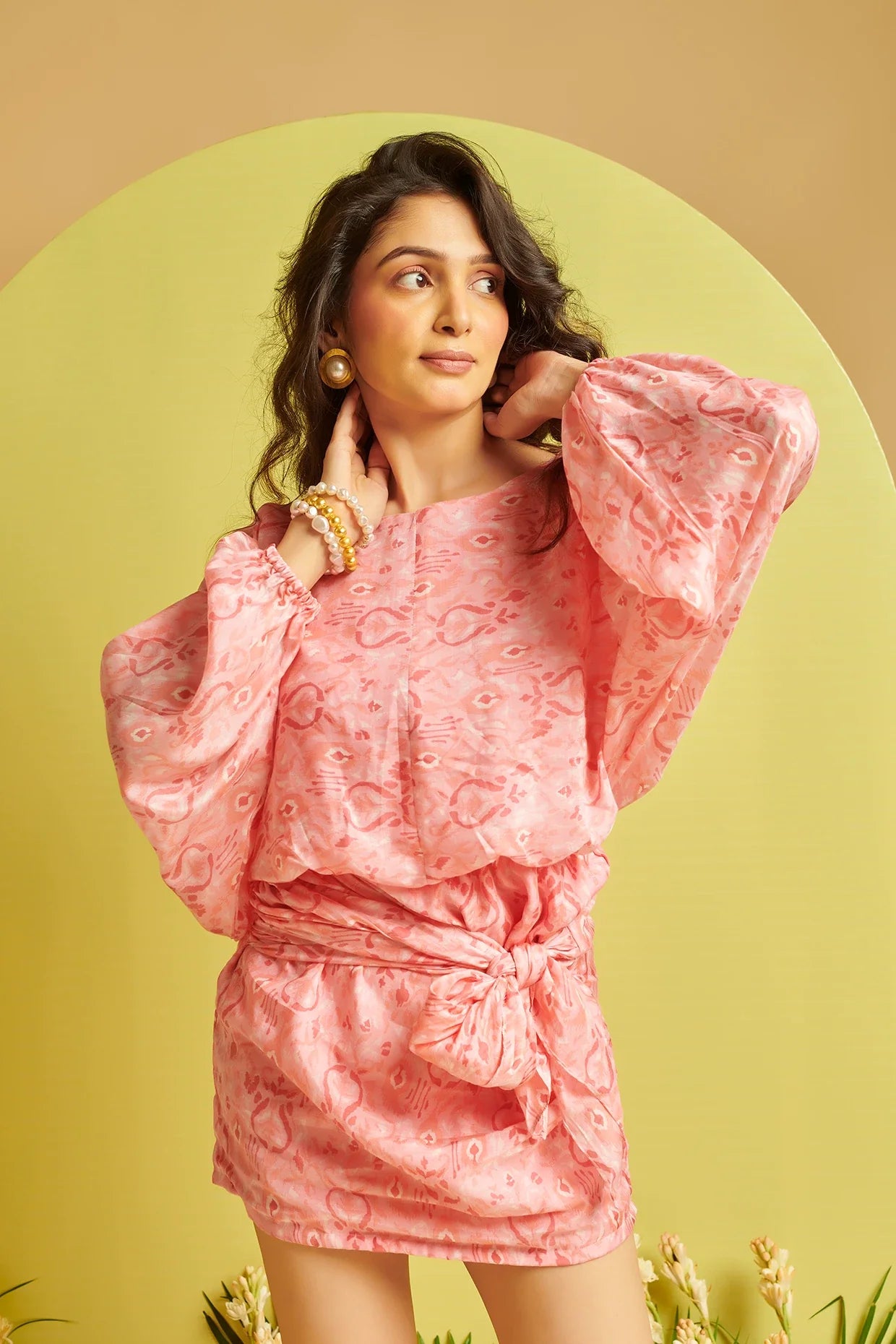 baggy sleeves with fitted bottom and bow tie detailimg on side.