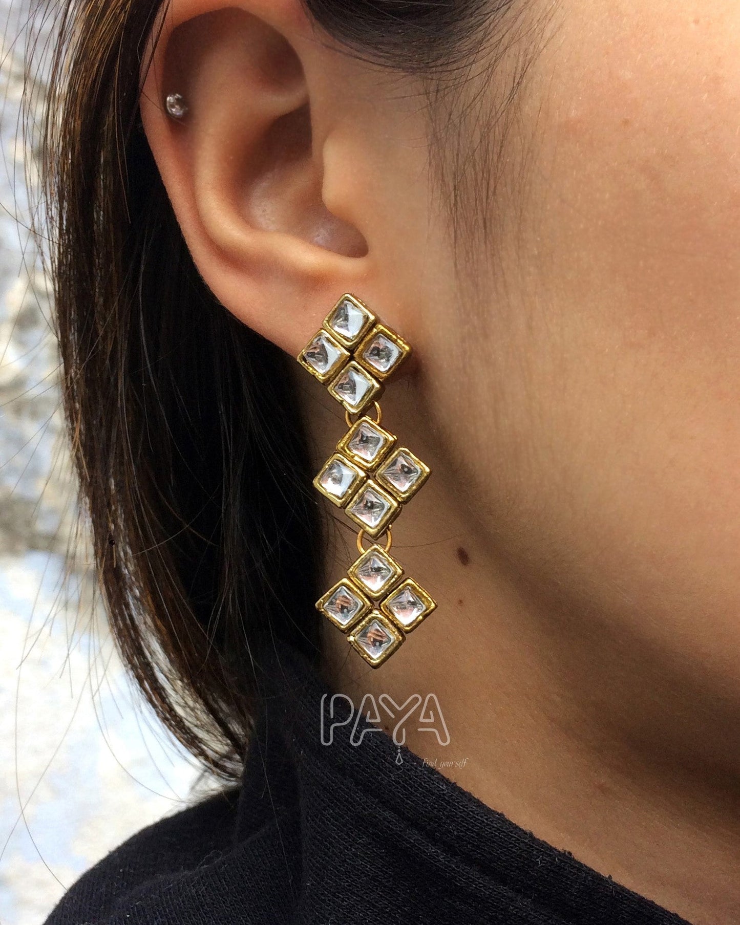 Square Kundan Dangler Earrings
