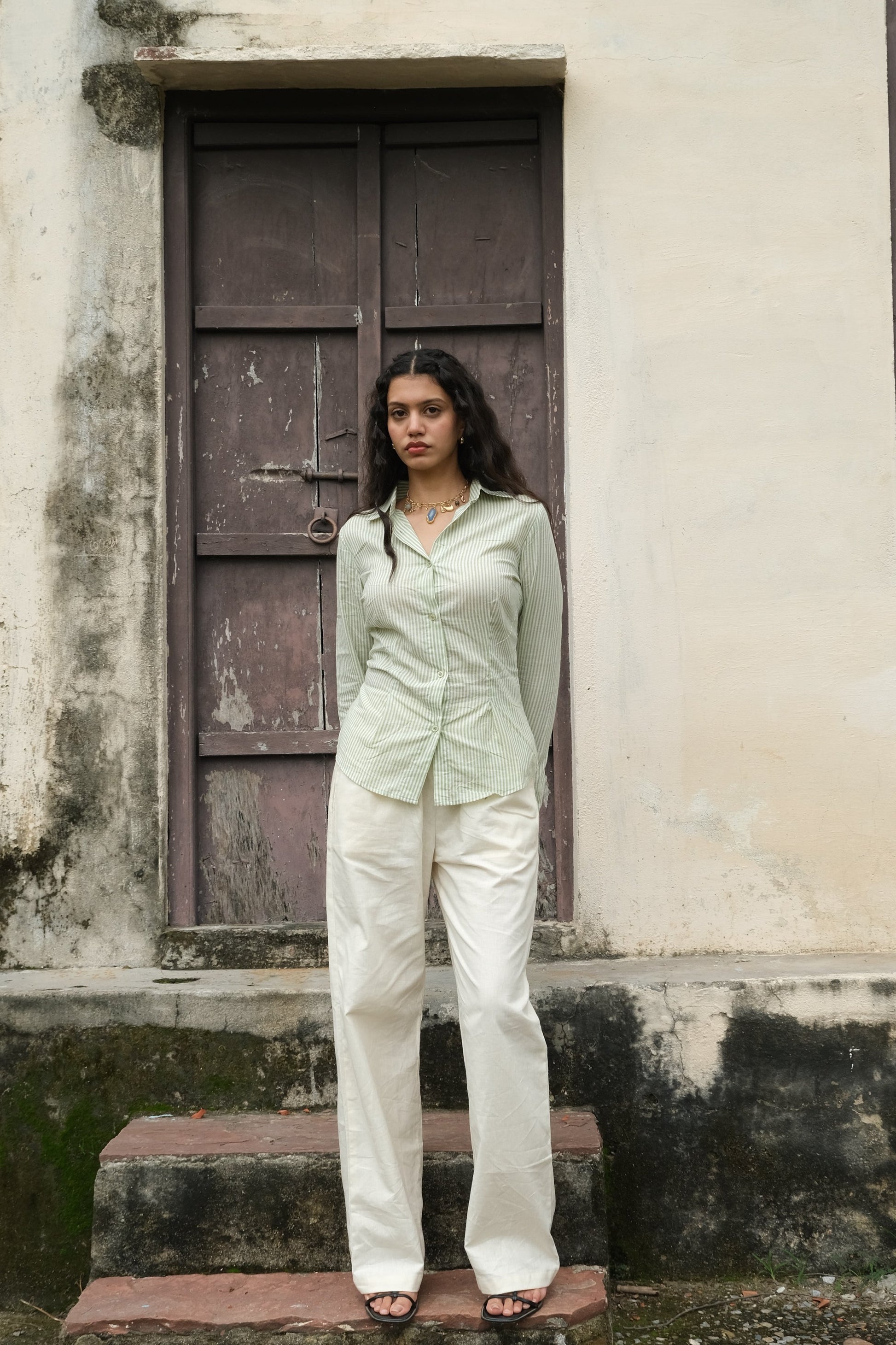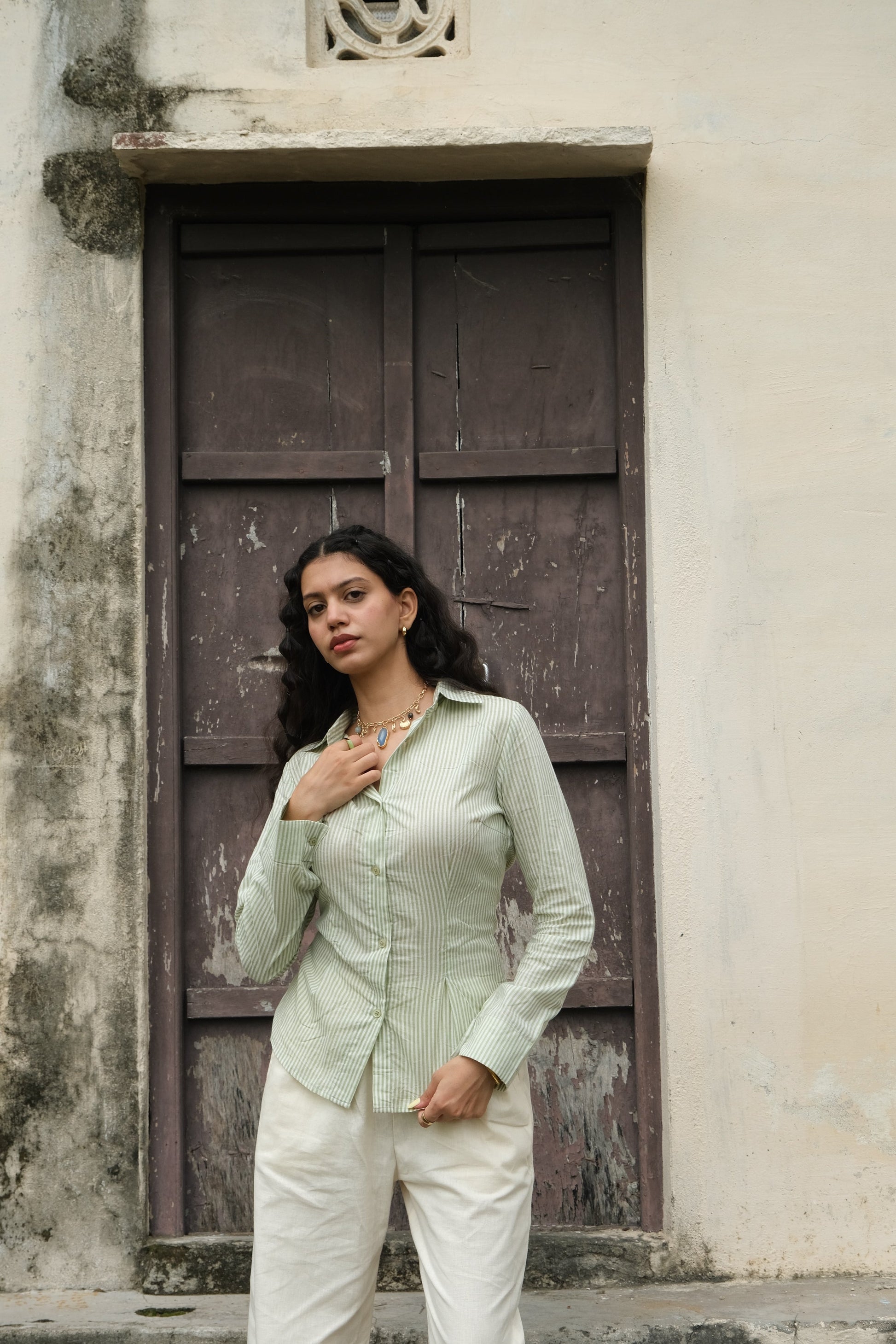 This shirt is classic tailoring with a modern twist. Clean lines, crisp cotton, and a flattering corset fit that hugs just right. Wear it to work, brunch, or wherever confidence is required. Dress it up or down — this staple does it all.
