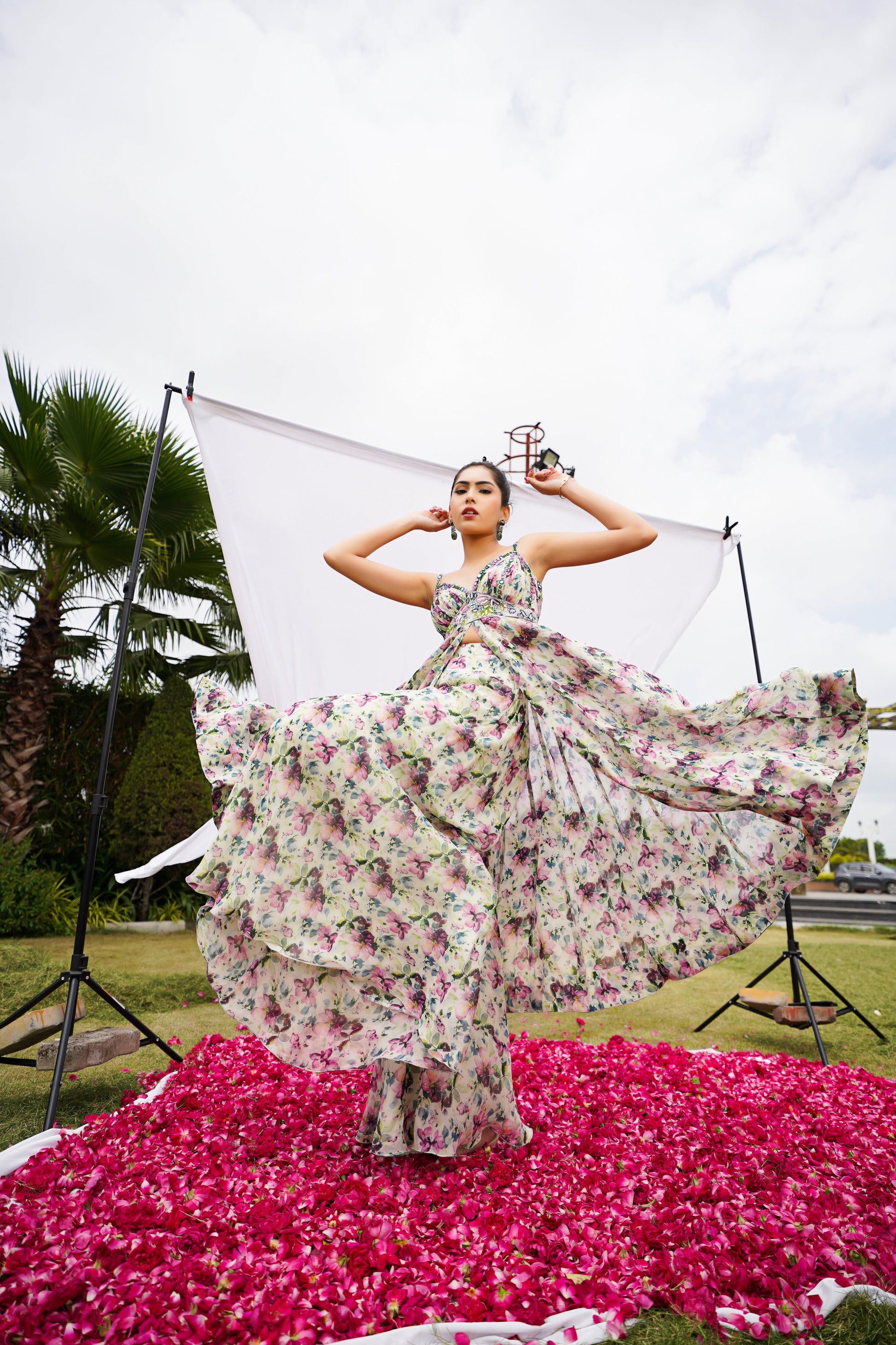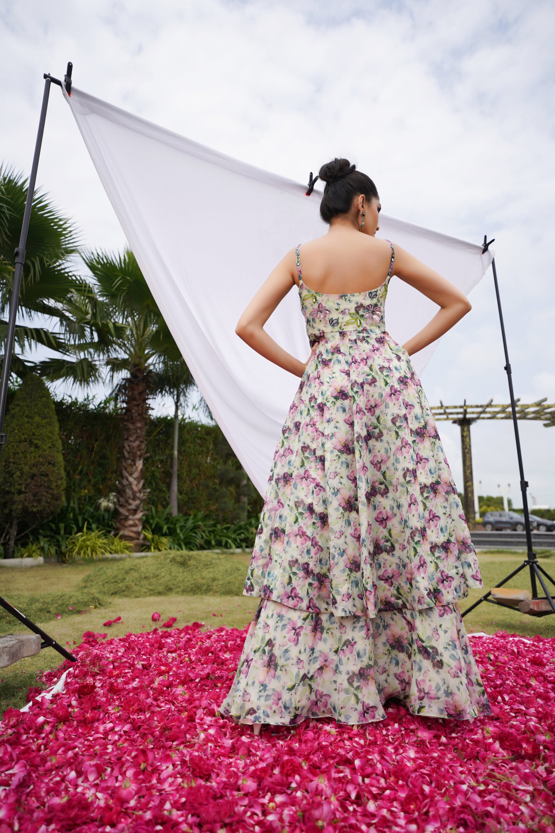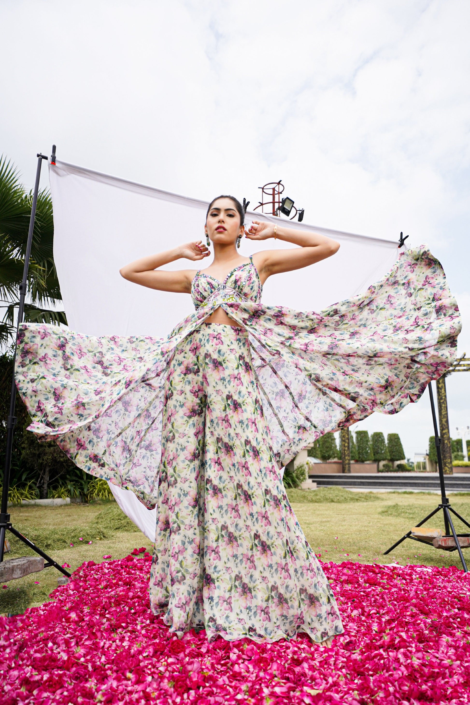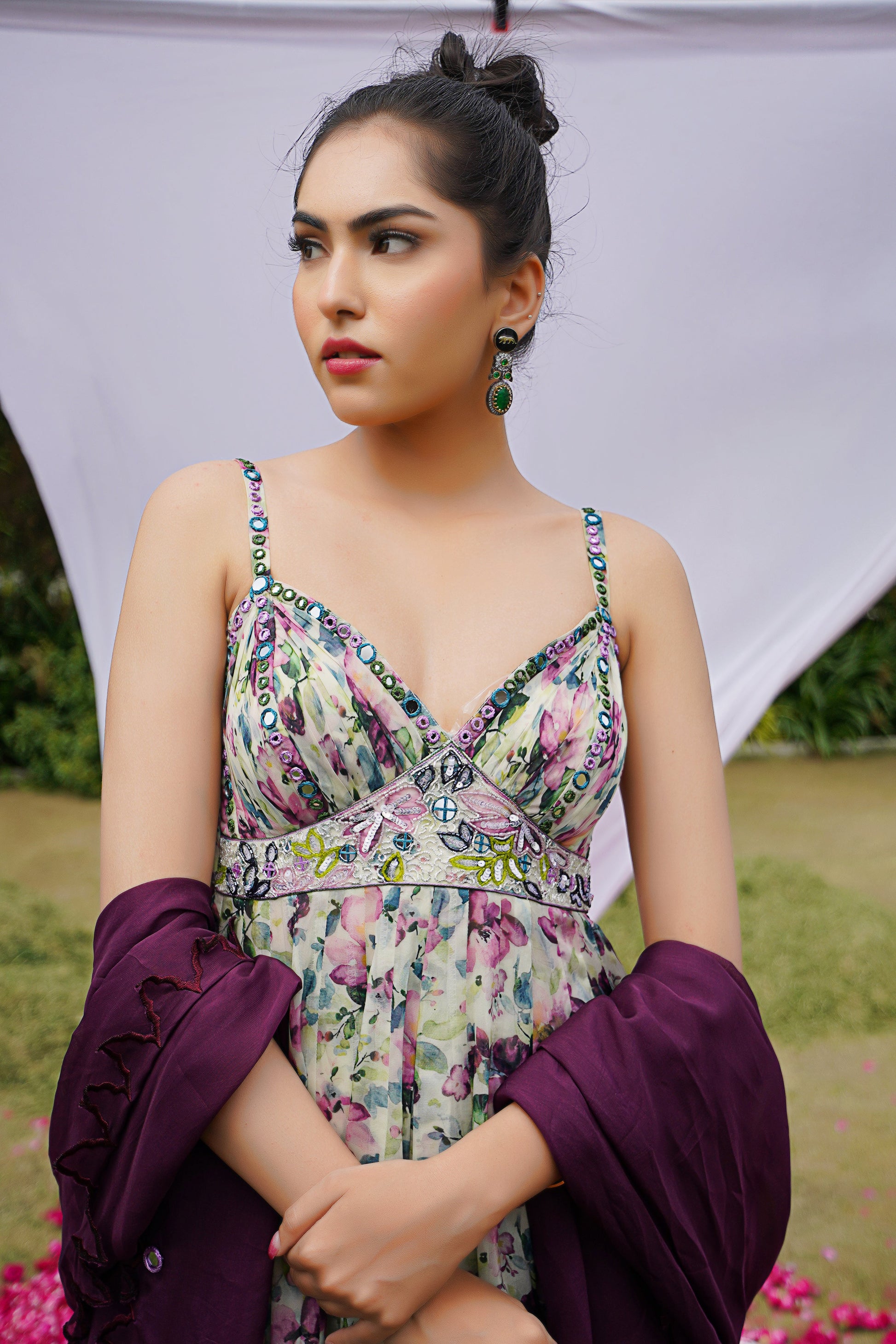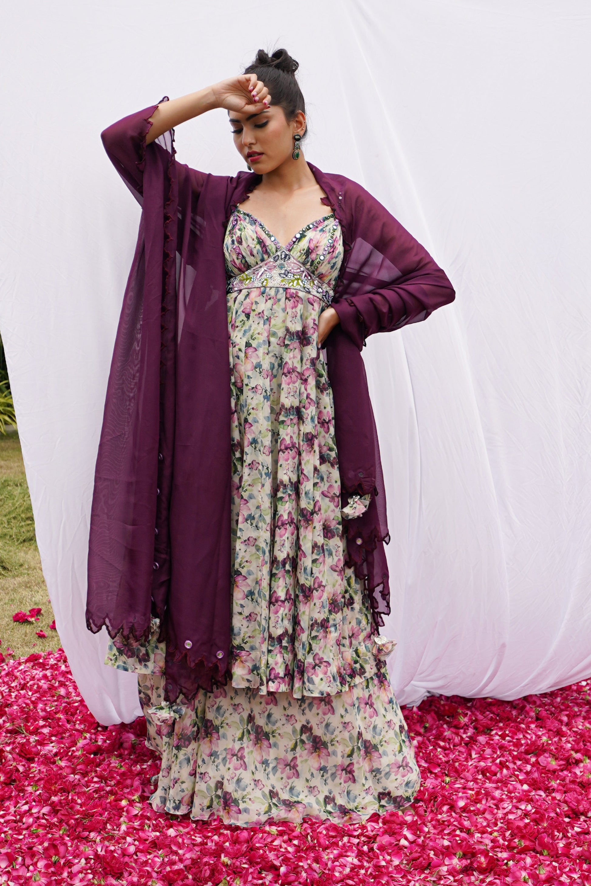 VIOLET AFRICAN FLORAL ANARKALI SET (SET OF 3)