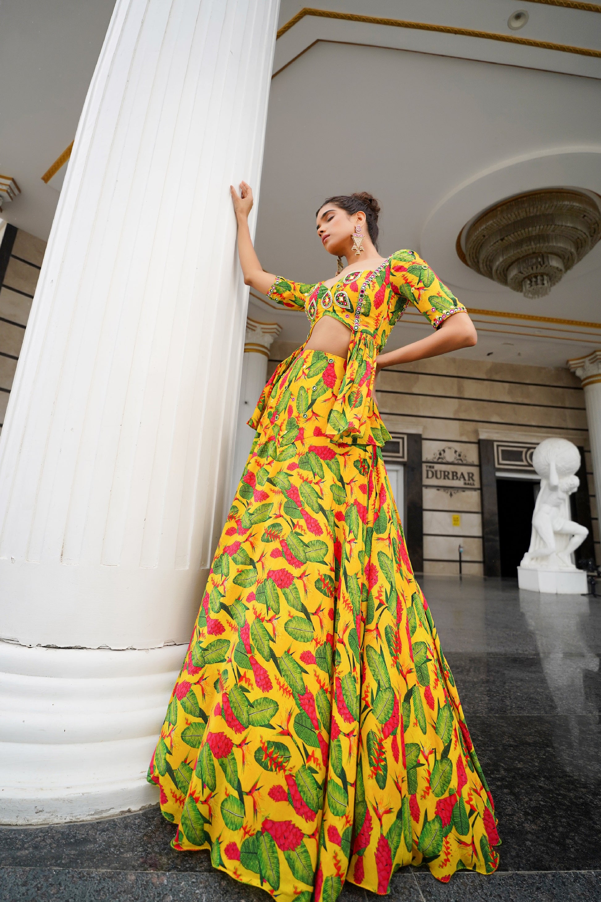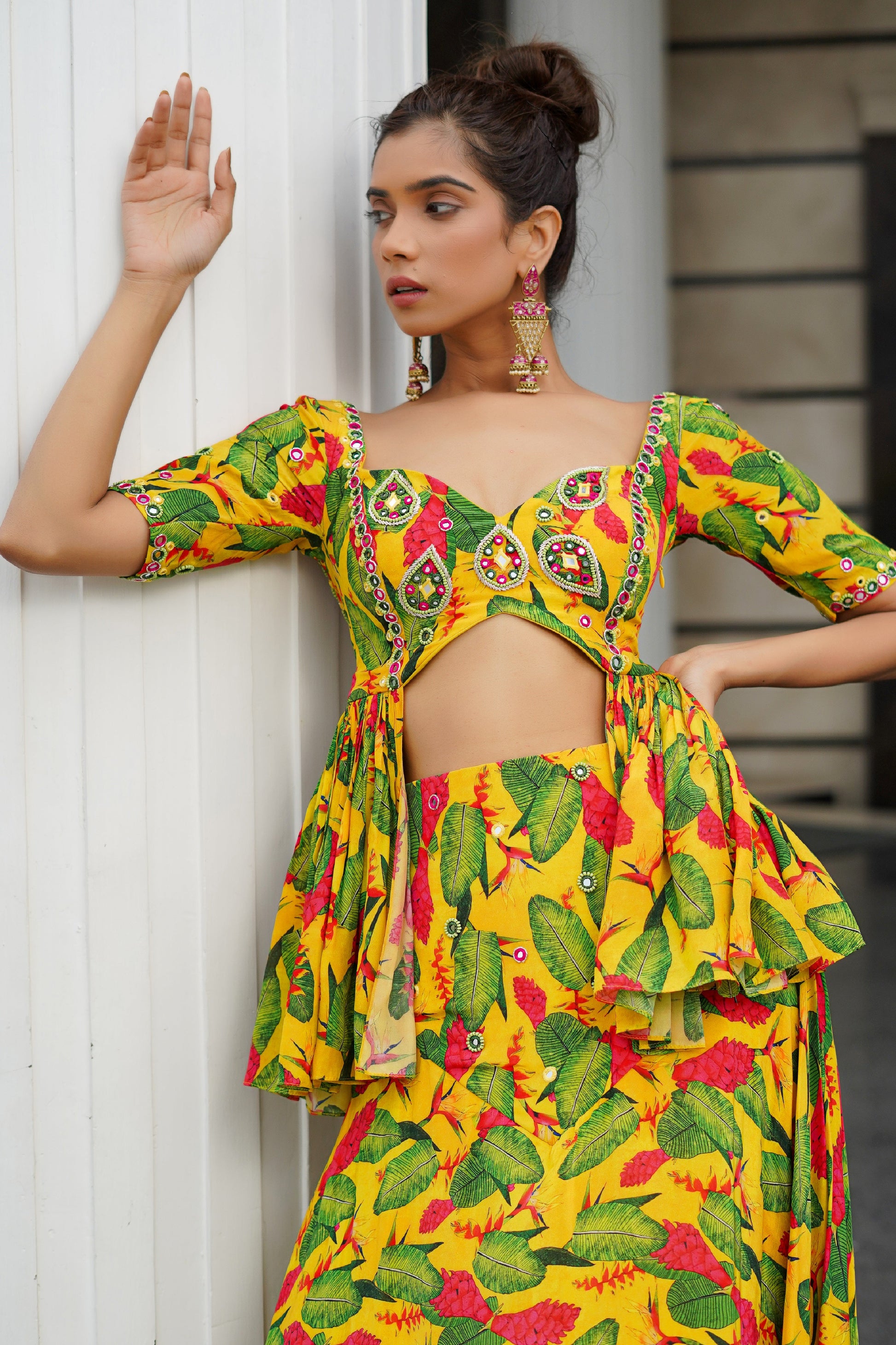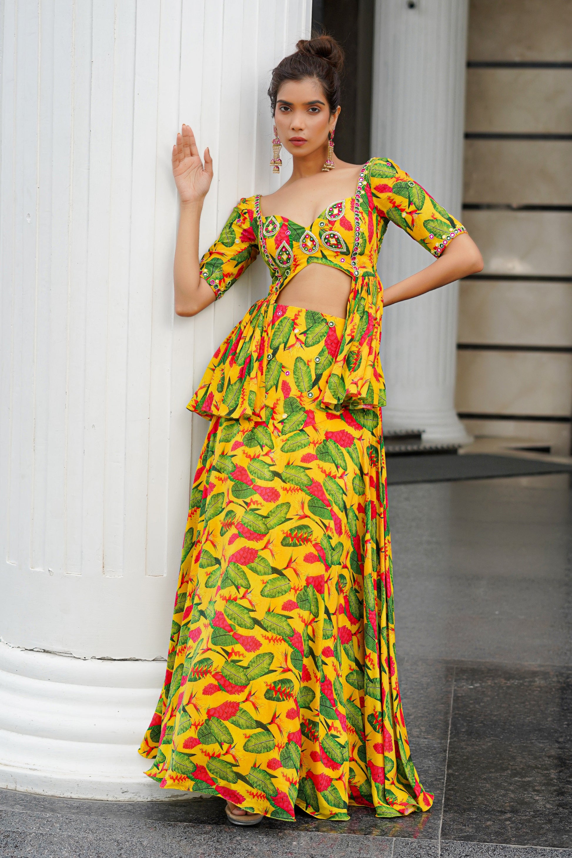 YELLOW GINGER FLOWER PEPLUM LEHENGA (SET OF 2)