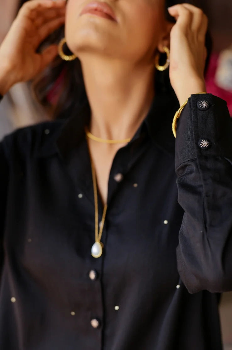 Zoom Black Hand Embroidered Evil Eye Shirt