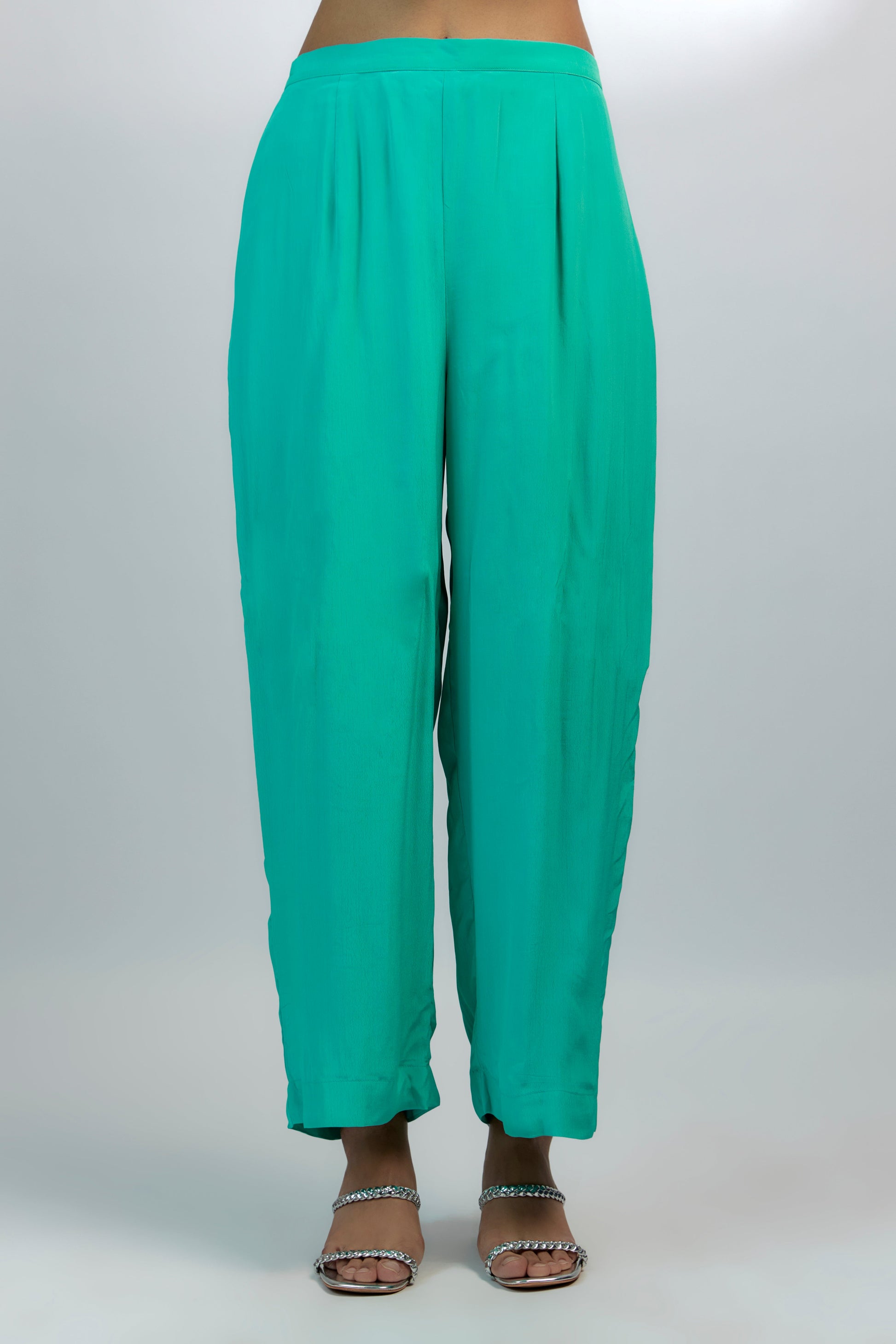 Dive into style with our Zoya Kurta Set! Sparkling silver embroidery adorns the body, sleeves, back yoke and side slits of the kurta. Hand embroidered in glass beads, bugel beads and contrast thread detailing. It takes one artisan over 75 hours to embroider one kurta. Effortlessly chic, this set is your go-to for fun-filled occasions where you want to shine. The kurta is paired with straight pants.
