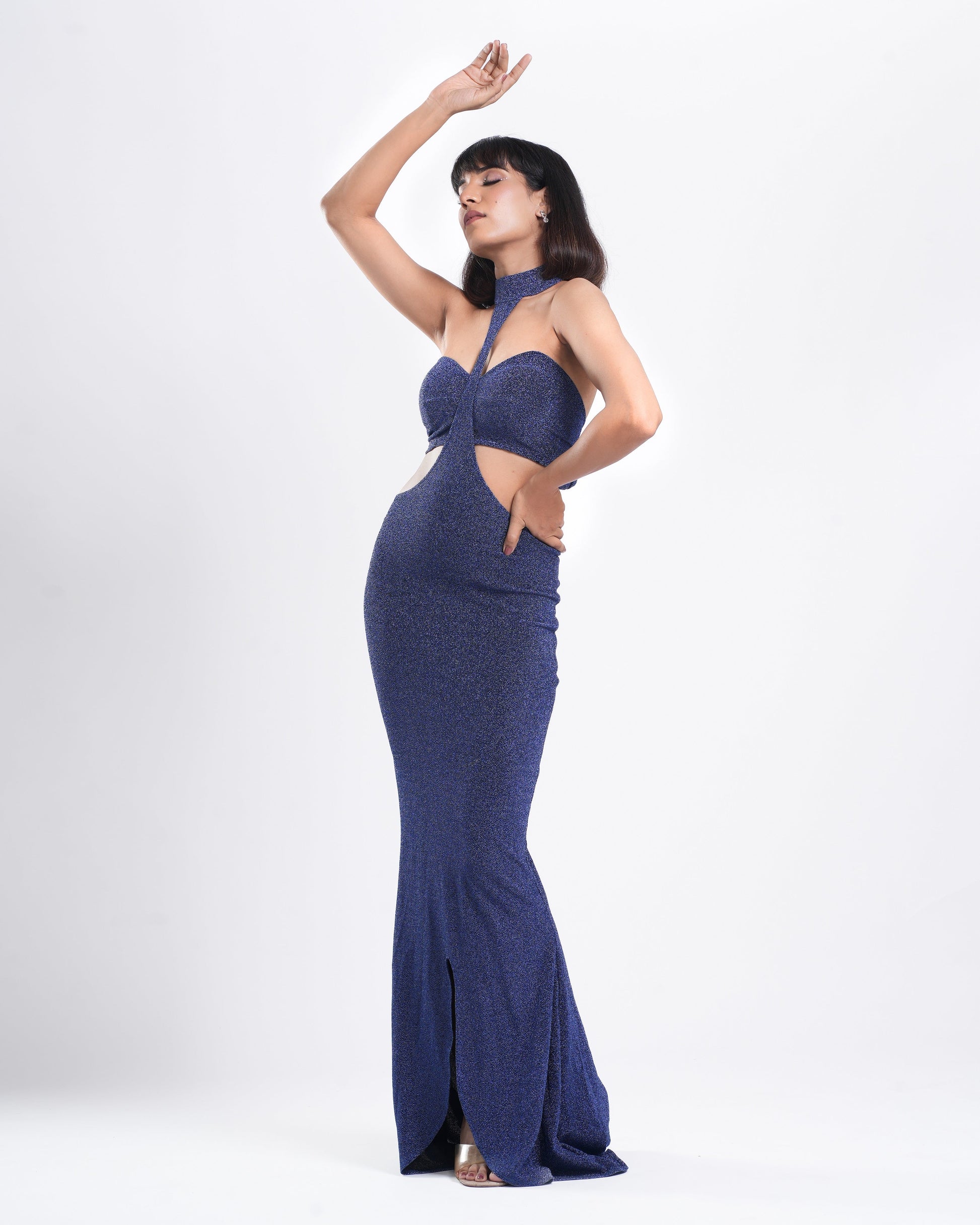 Zyra - Blue Shimmer Mermaid Long Dress ( Set of 2 )